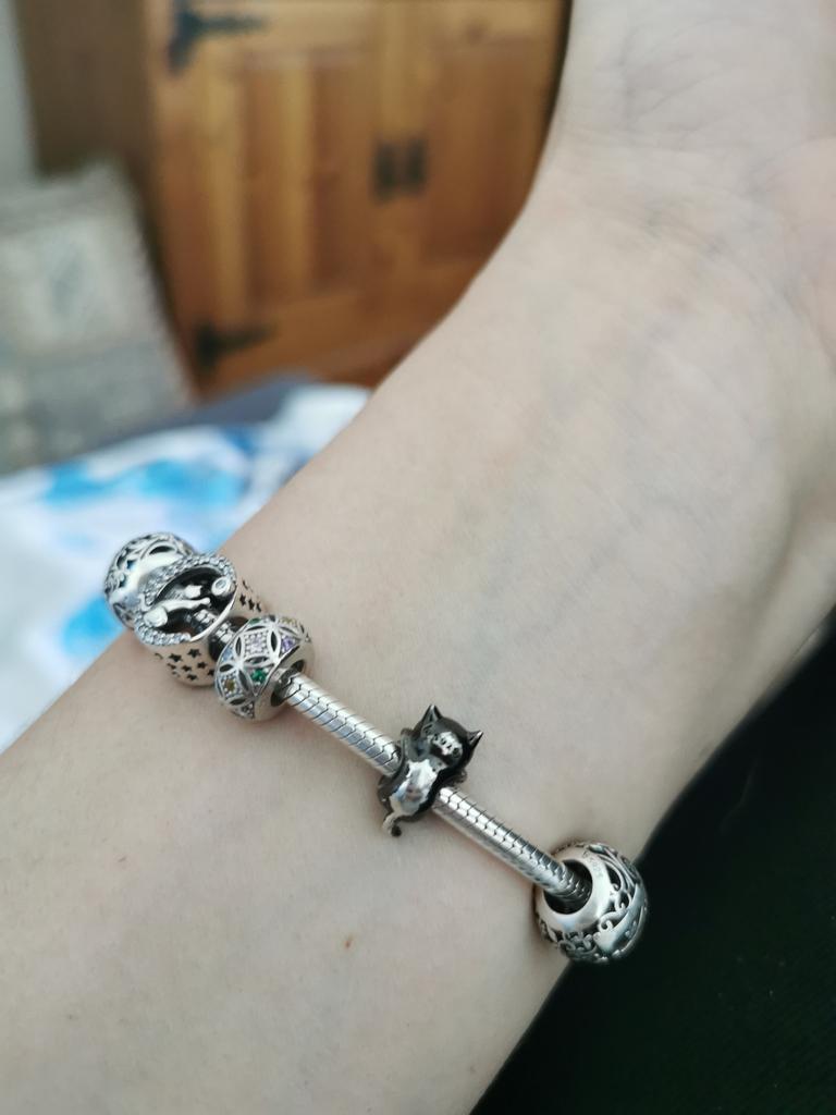 WOSTU 925 Sterling Silver Synthetic Enamel Black Cartoon Cat Charm Beads for Original 3mm Bracelets & Necklaces — buy online with free worldwide shipping!