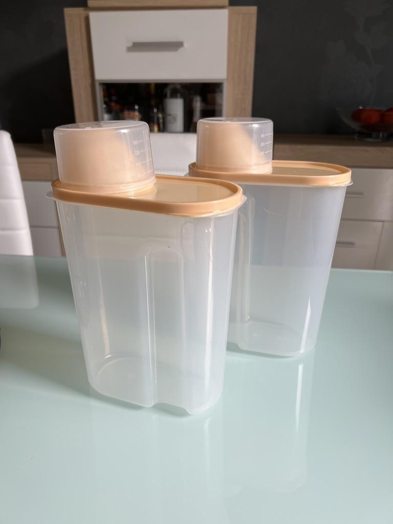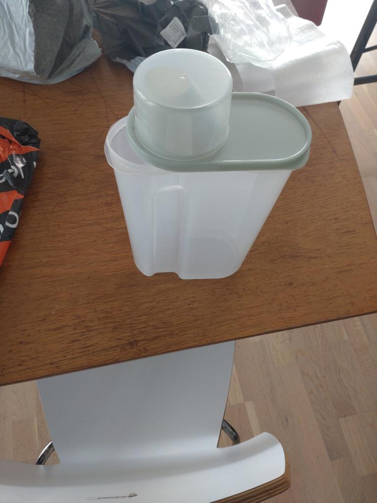 Plastic containers - 2.5l capacity ( I ordered 2 pieces ) the last photo shows a size comparison between 2.5l and 1.9l Very nice quality, fairly fast shipping.