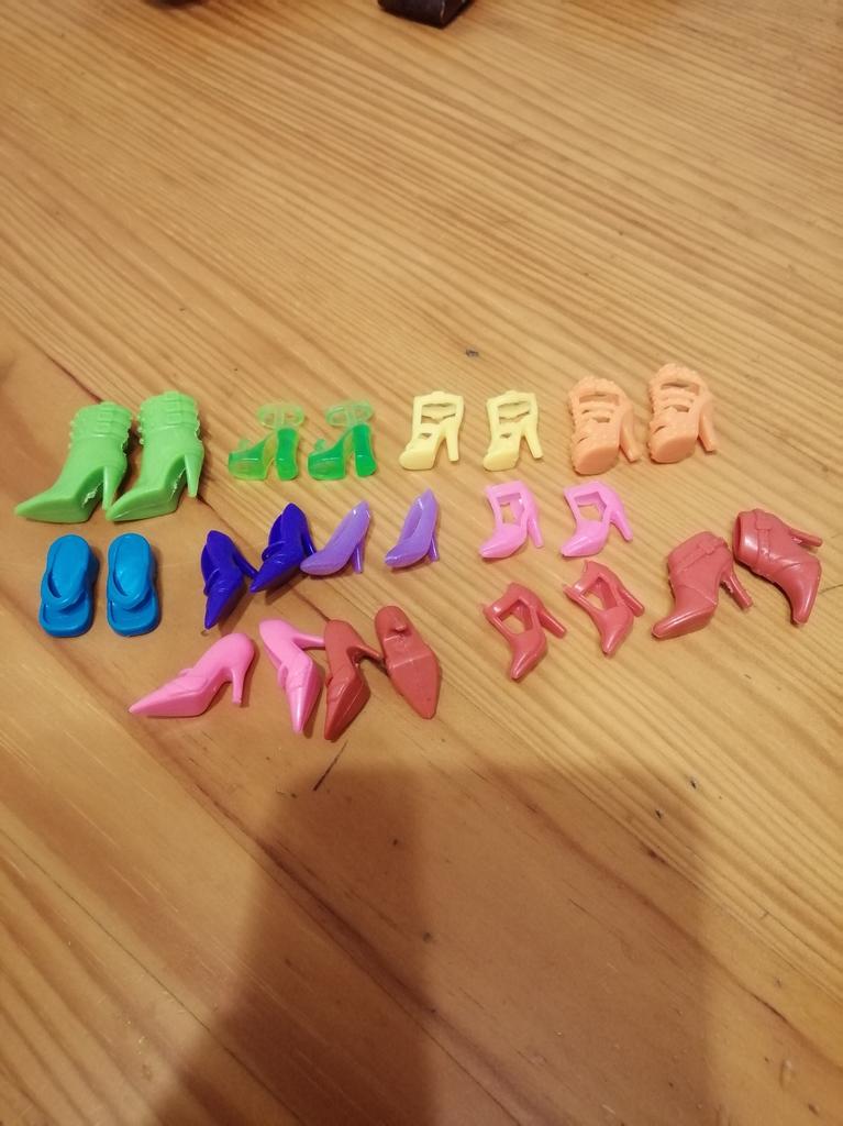 The shoes are wonderful, different colors and styles, as well as sizes... 4 pairs are very small, they fit only a Chinese doll without a joint in the foot... The rest fit a Barbie with a heeled foot... on a jointed foot - not so much(