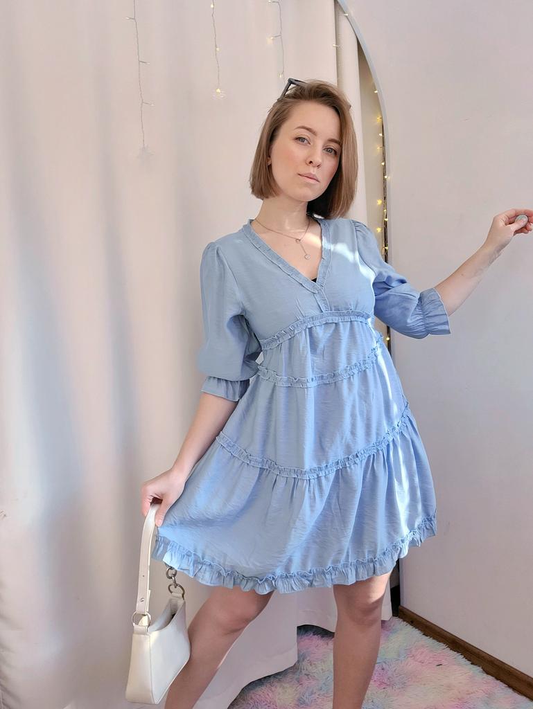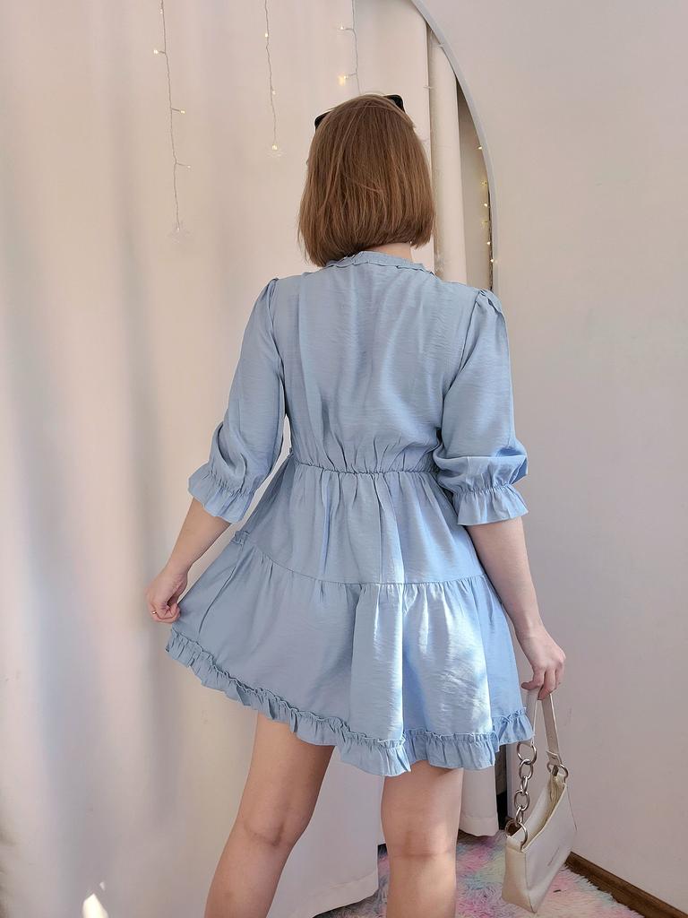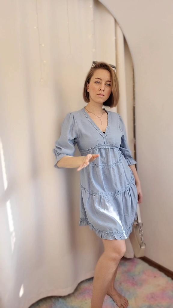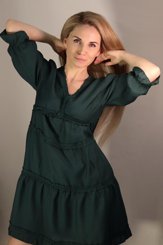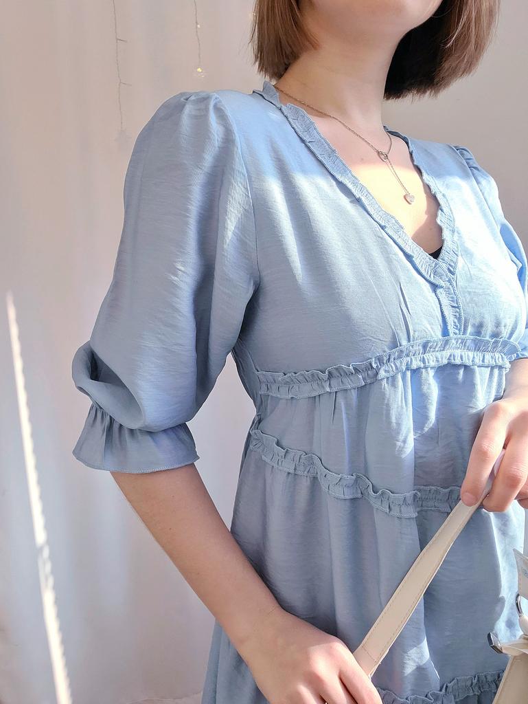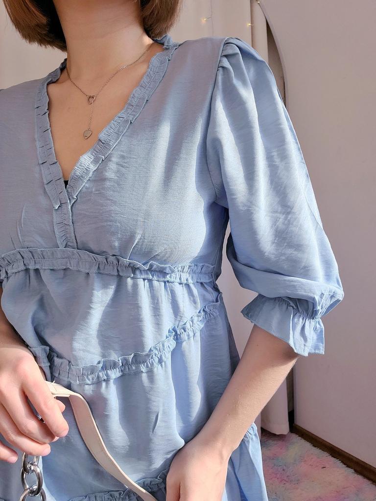 Spring Solid Ruffles Dress Women Three Quarter Sleeve V Neck High Waist Summer S-XL — buy online with free worldwide shipping!