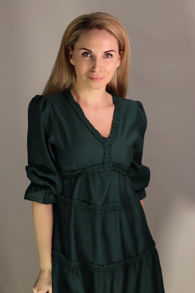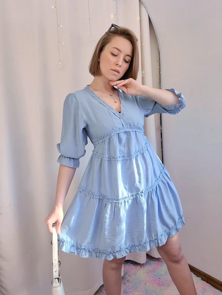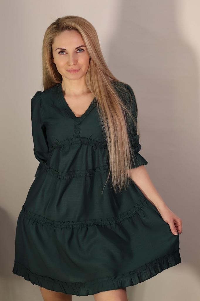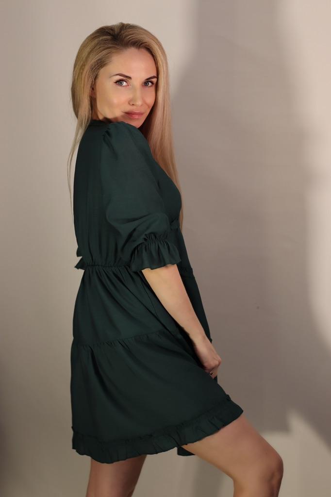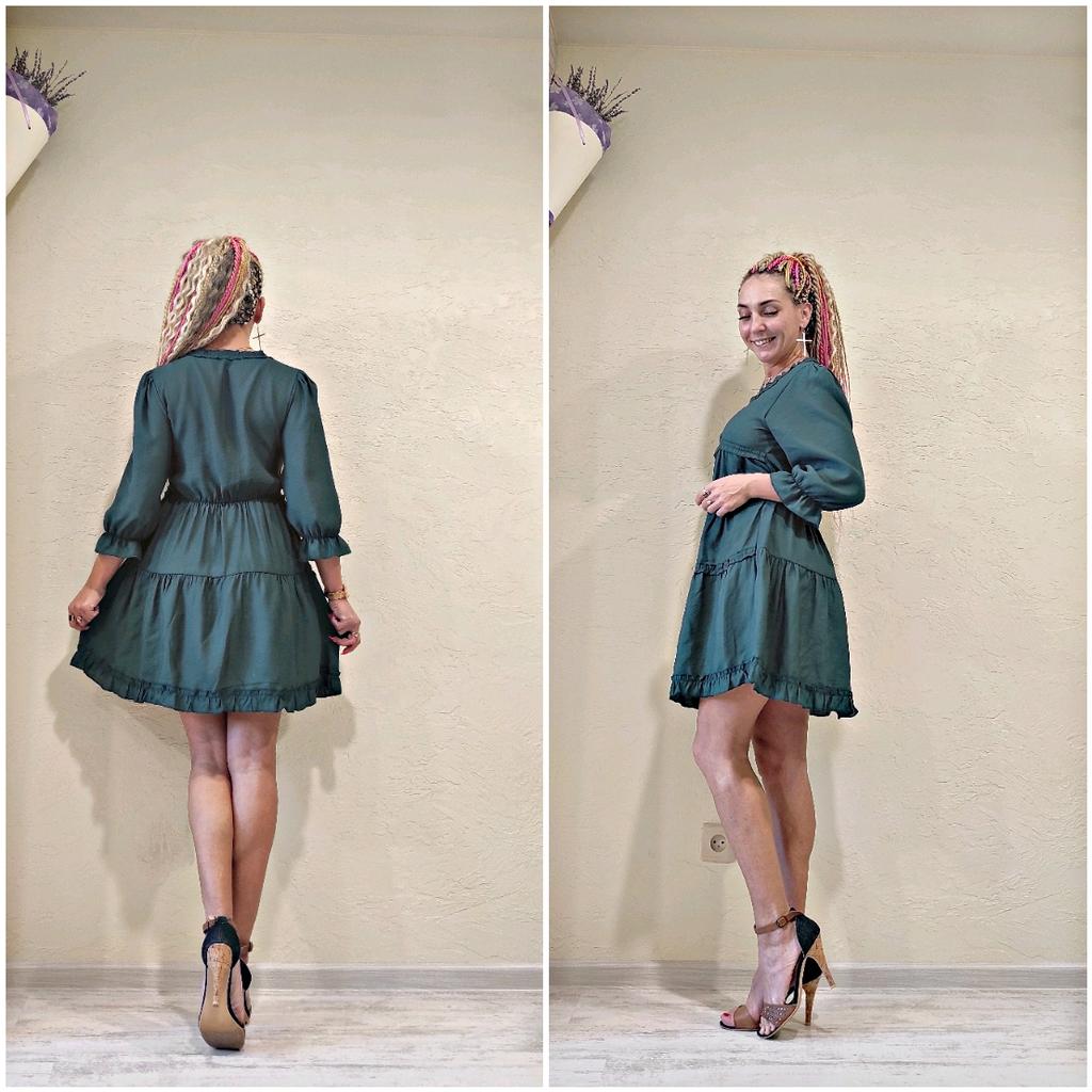 Spring Solid Ruffles Dress Women Three Quarter Sleeve V Neck High Waist Summer S-XL — buy online with free worldwide shipping!
