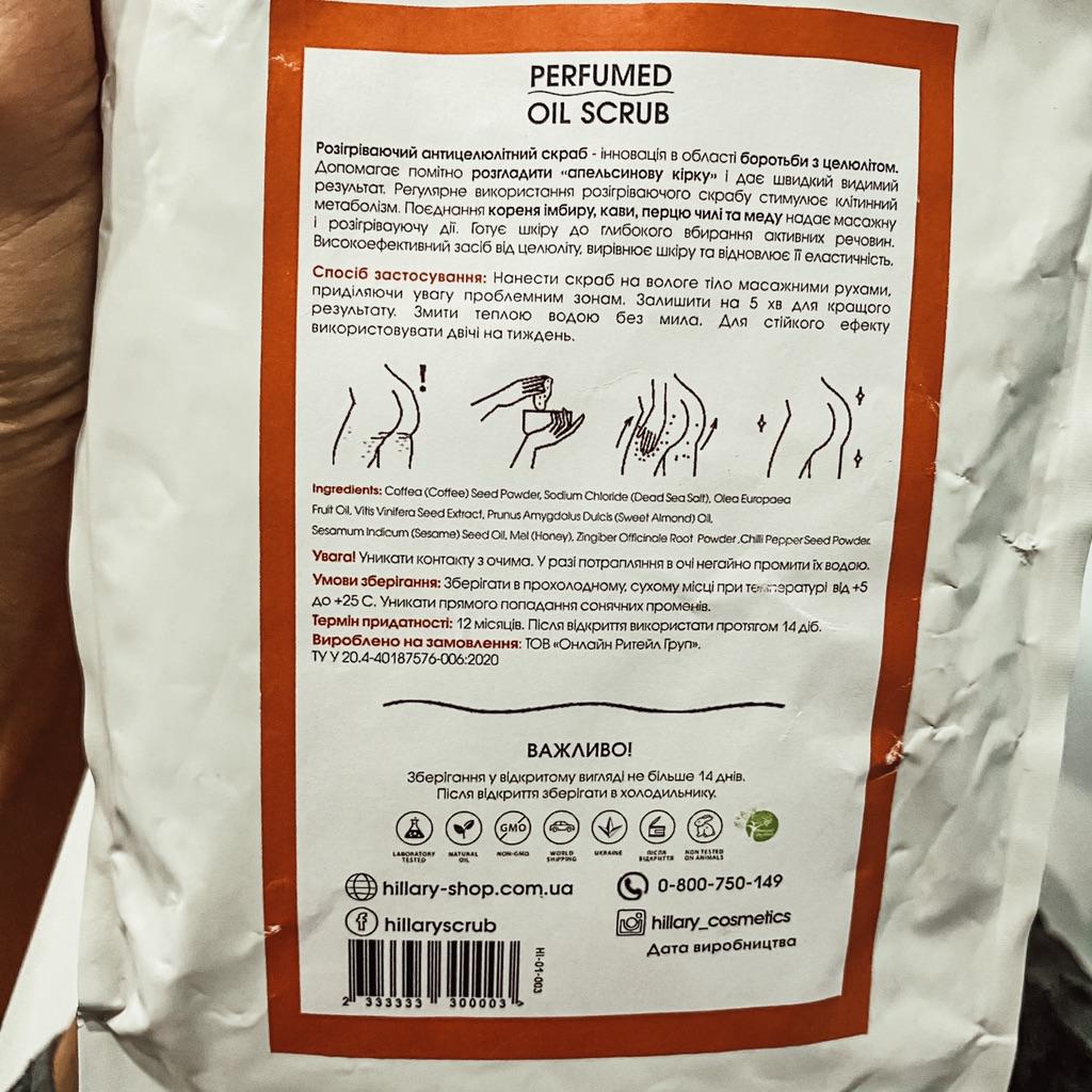 Hillary Anticellulite Oil Scrub is a natural spicy salt scrub with honey, ground coffee, ginger and chili. Helps to achieve a quick visual effect of removing the "orange peel". The skin becomes taut, firm, even and smooth. Thanks to the warming properties, combined with the massage effect of the scrub, the result is not long in coming..