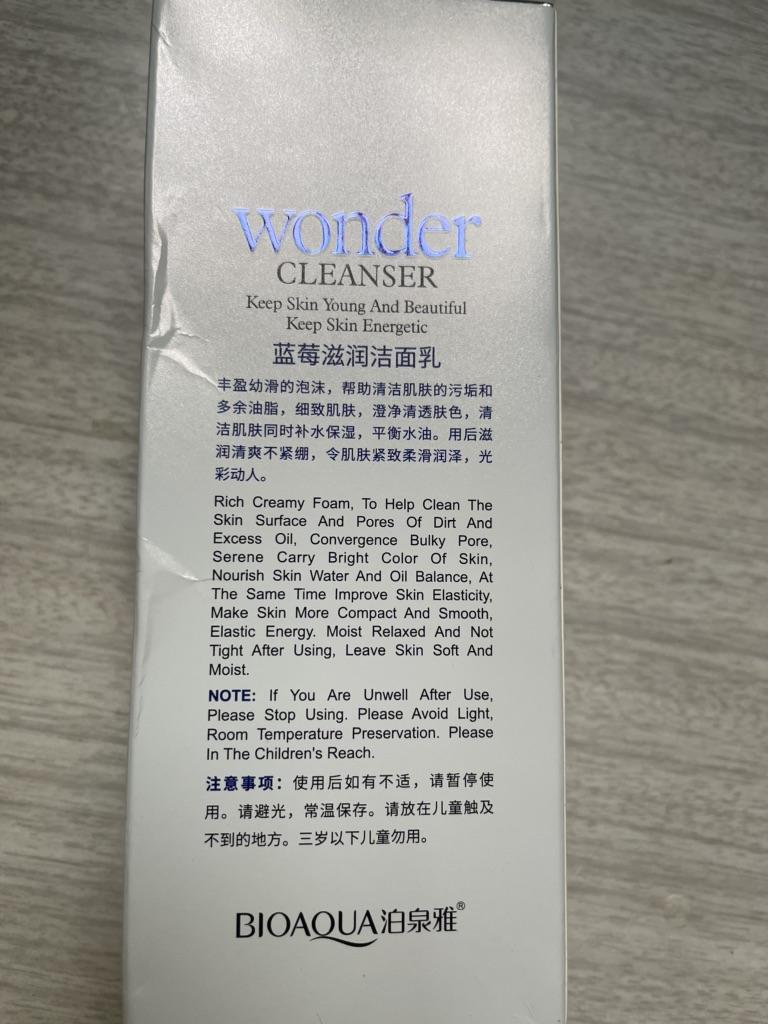 Bioaqua brand facial cleanser. I have tried many products of this brand and I like them a lot, it seems to me a brand with a very good quality price. The cleanser is blueberry based which has rejuvenating properties. Although the ingredients come in another language. The appearance is a bright white cream that, on contact with water, makes a light foam that cleanses very well without drying it out. Then the skin is not tight at all. It came perfectly sealed