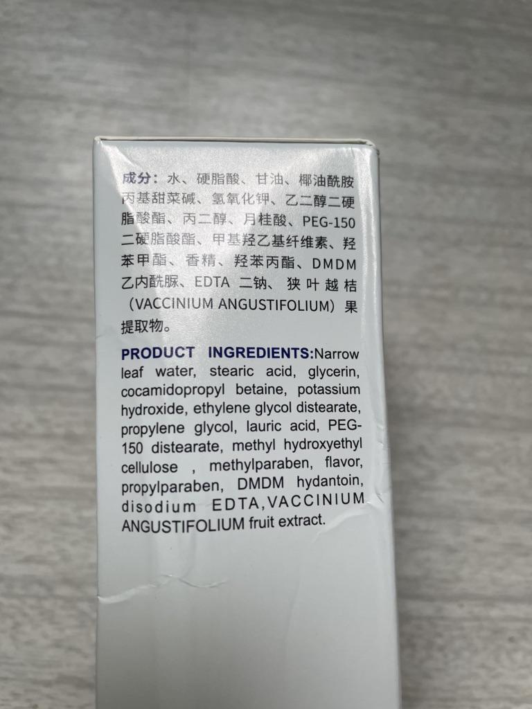 water, glycerin, stearic acid, palmitic acid, myristic acid, lauric acid, narrow leaf cranberry, hamamelis north america extract, hyaluronic acid sodium, potassium hydroxide, propylene glycol, hydroxymethyl, iodine propiolic alcohol, essence