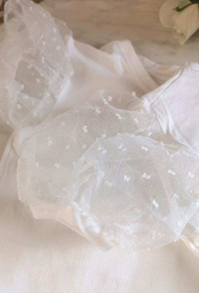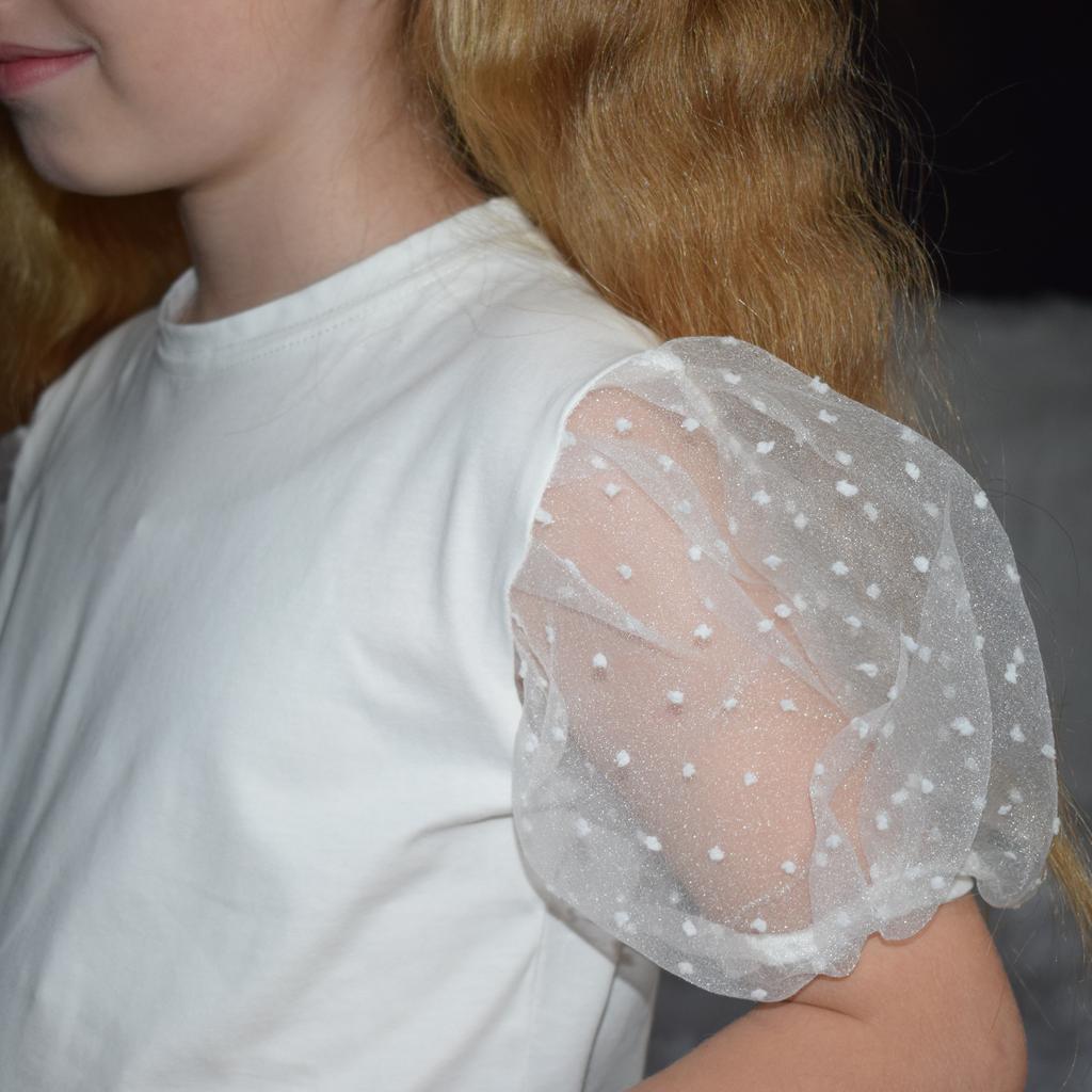 Mesh Patchwork Girls Polka Dot Puff Short Sleeve Tees Summer Kids Party School Tops — buy online with free worldwide shipping!