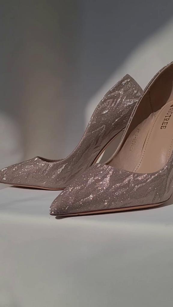 BIGTREE Women's Slim Heel 7.5- 10.5cm High Heel Shallow Mouth Pointed Sequin Sexy Night Club High Heels — buy online with free worldwide shipping!