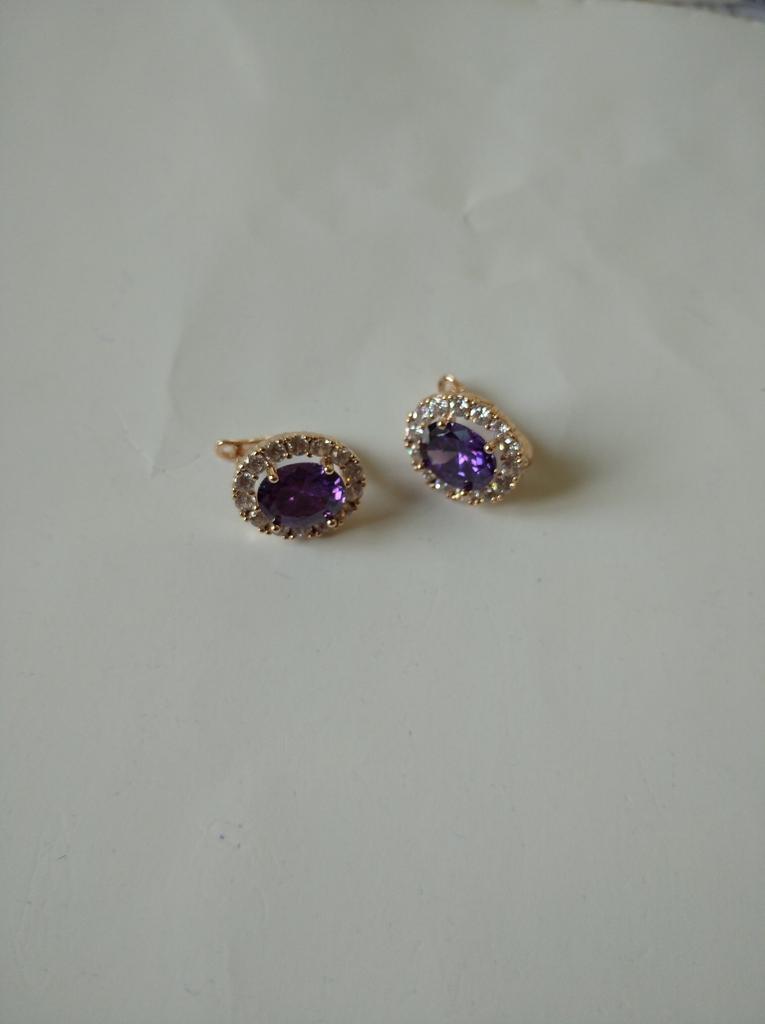 Luxury Purple Stone Gold Color Love Drop Earrings Bride Band Engagement Ear Clip Jewelry — buy online with free worldwide shipping!