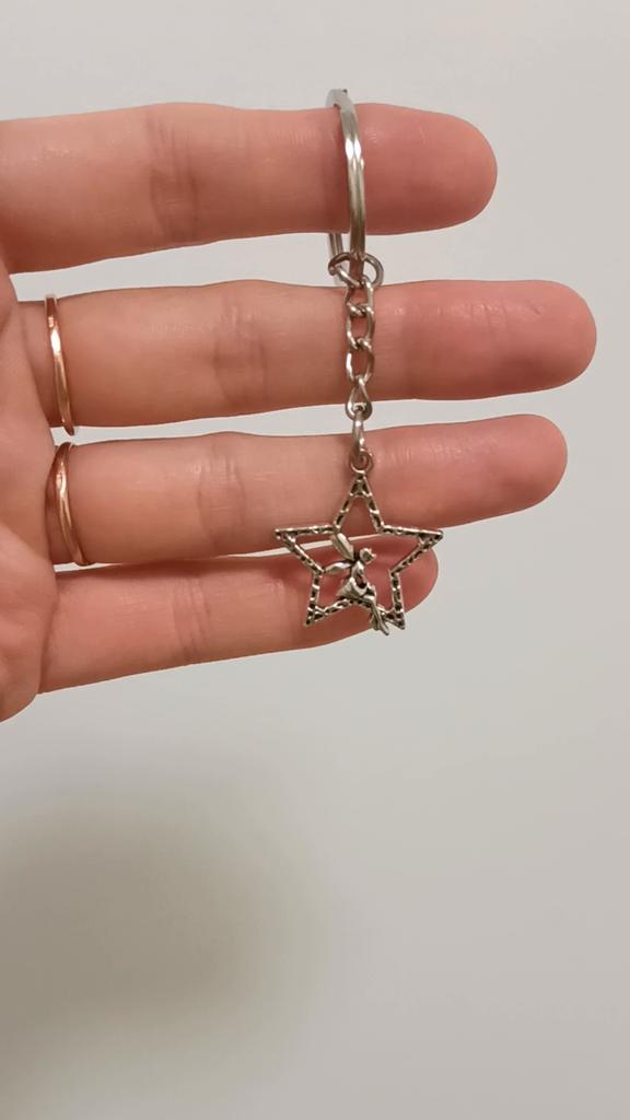 Fashion 30mm Key Ring Metal Key Chain Keychain Jewelry Antique Bronze Silver Color Plated Angel Star 30x24mm Pendant — buy online with free worldwide shipping!