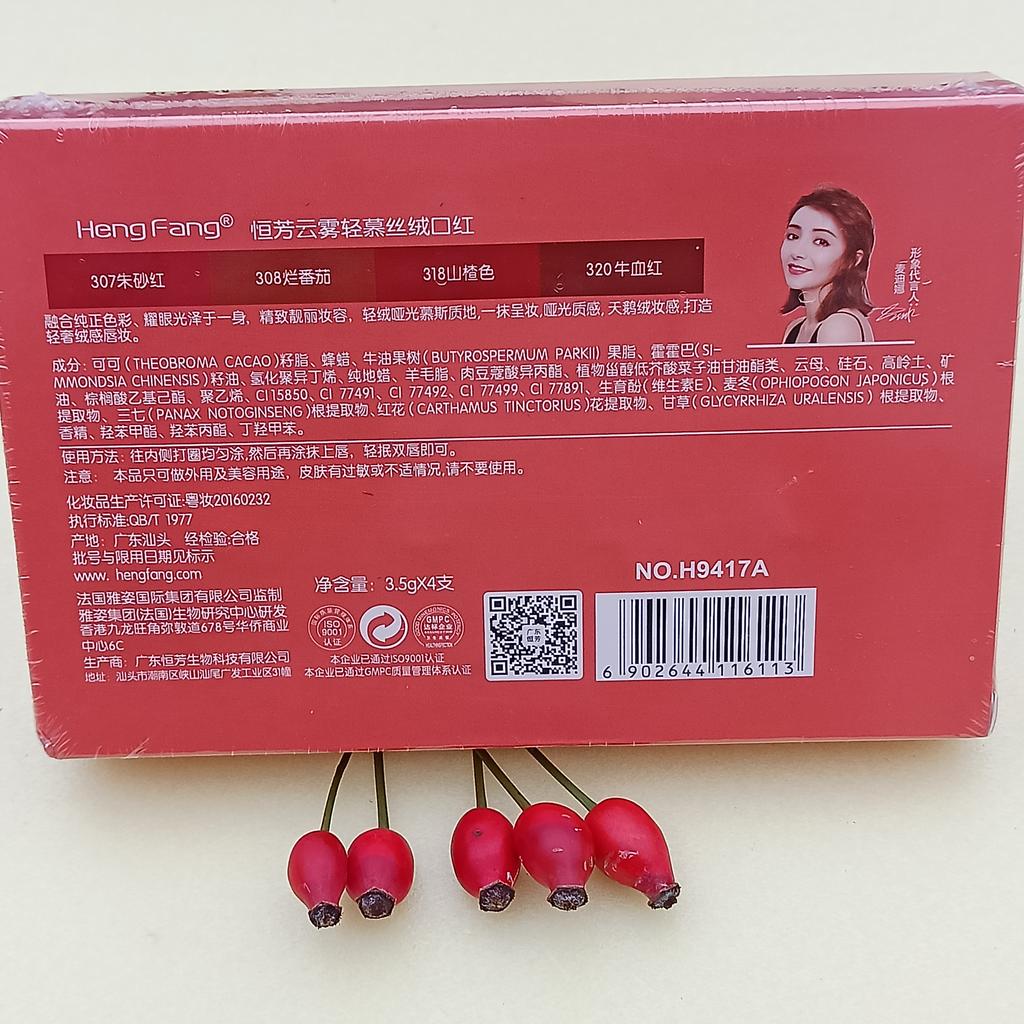 HengFang Velvet Matte Lipstick Set Not Easy To Fade Lip Makeup Cosmetic 3.5gx4 — buy online with free worldwide shipping!
