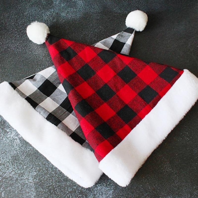 Safety Soft Comfortable Warm Lovely Plaid Christmas Hat Enhance The Holiday Atmosphere — buy online with free worldwide shipping!