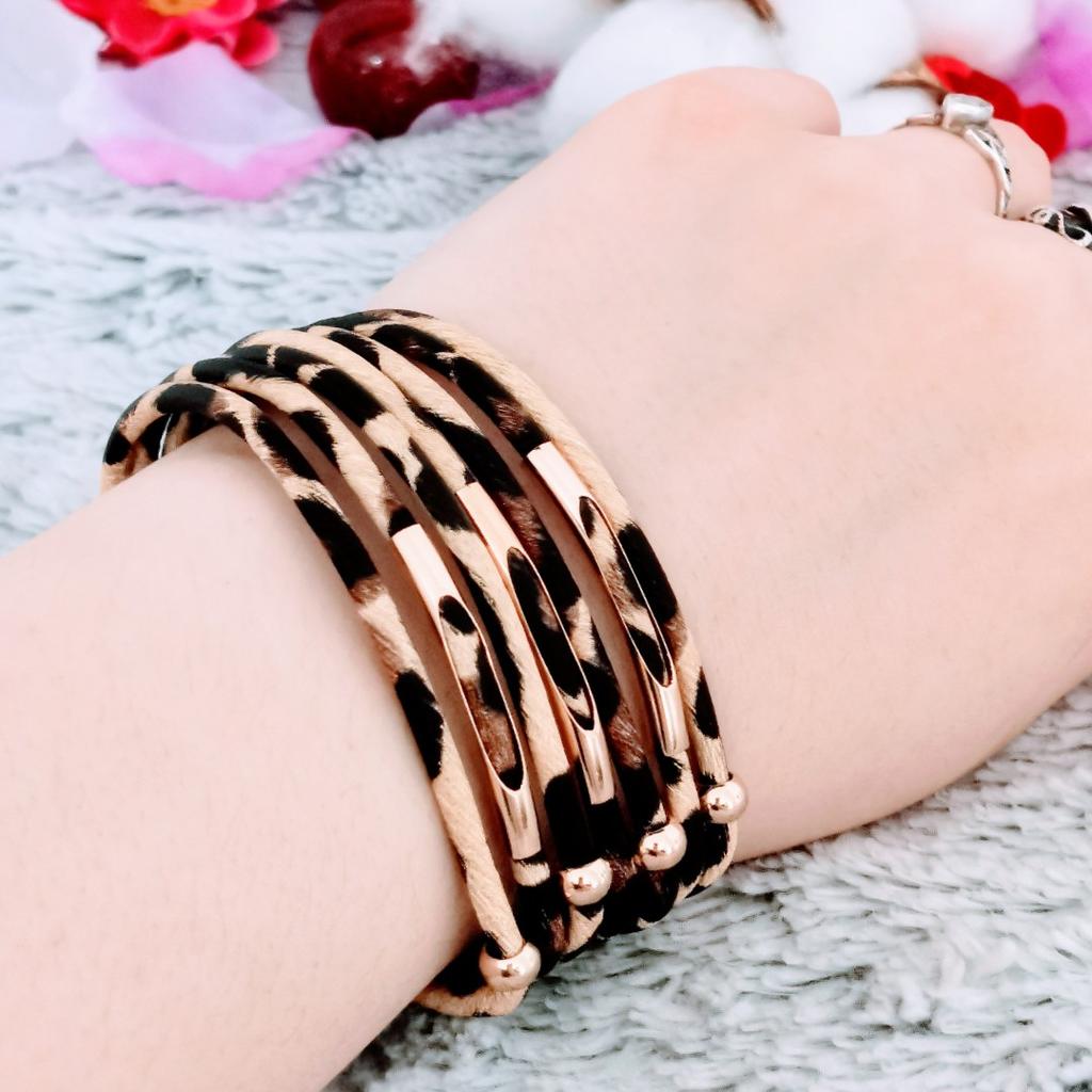 New Fashion Elegant Multilayer Leopard Leather Wrap Wide Bangles Bracelets for Women Jewelry Gifts — buy products online with free worldwide shipping!