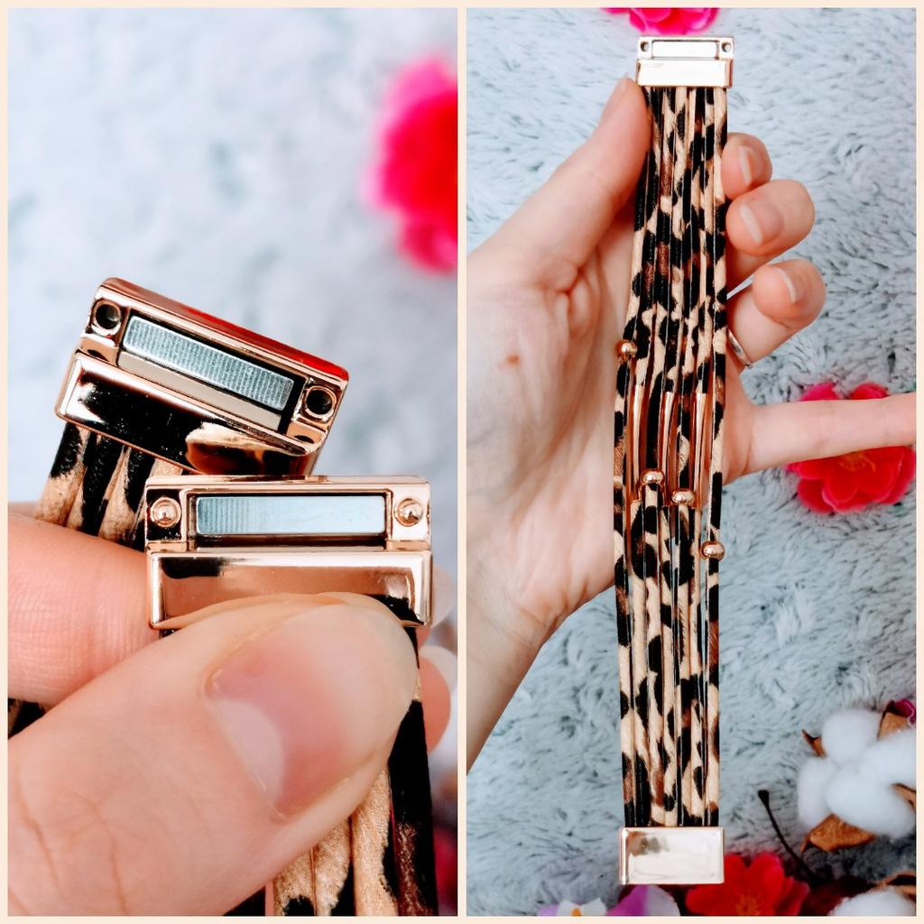 ⭐⭐⭐⭐⭐ Leotard PU leather strand wristband with magnet Delivery time: 17 days Packaging: air cushion envelope Arrived intact: yes Item matches description: yes Items matches product pictures: yes Material : PU leather / metal (unknown) Color: black, brown, beige / golden Other colors available: no Other sizes available: no Quality: perfect Additional comment: perfect size for my wrist, stylish and neat. I love the magnetic closure Recommendation: yes Reference sizes: wrist: 16 cm