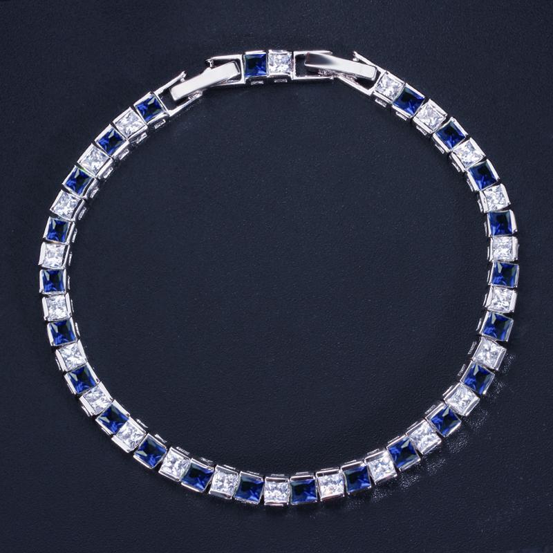 WWJ Elegant Princess Cut Royal Blue Zircon Tennis Bracelets Bangles for Women — buy online with free worldwide shipping!