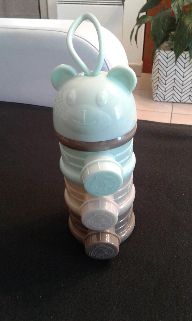 Perfect, as in the photo. 3 jars for 3 doses of powdered milk. The pastel colors are very pretty. Fairly long delivery, 53 days.