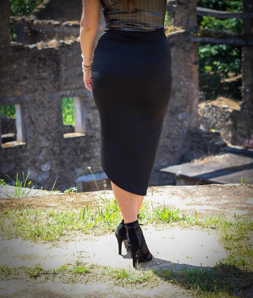 The skirt is incredible. It adapts very well to the body. I adore. You can place the smallest or largest slit, it is adjustable