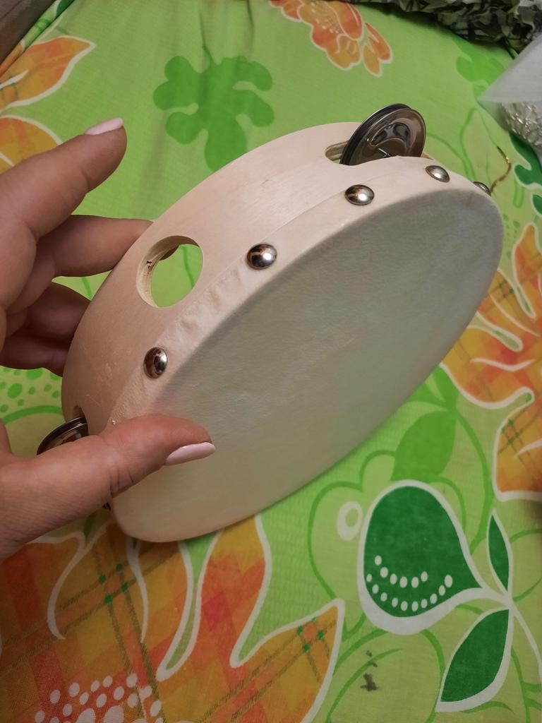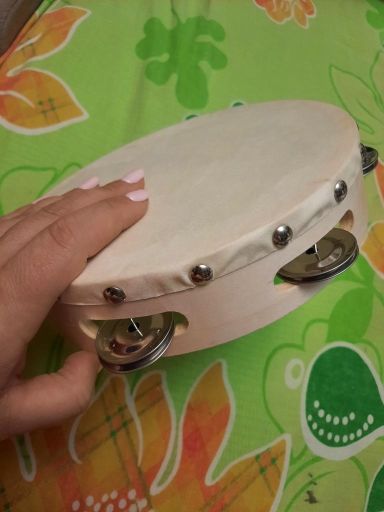 Hand Tambourine with Metal Single Row Jingles Sheepskin Drum Skin Wooden Tambourines — buy online with free worldwide shipping!