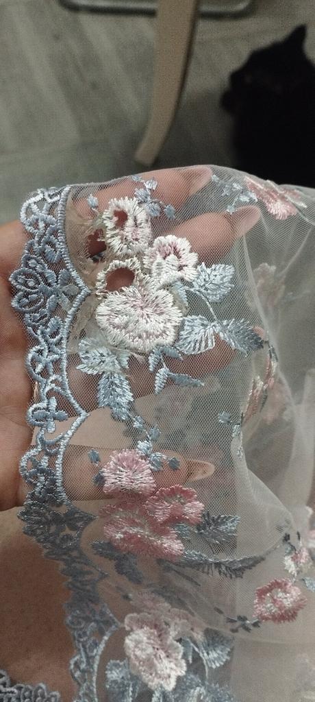 1Y Wide 20CM Grey Flower Lace Fabric Accessories For Handmade DIY Clothing Wedding Dress
