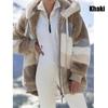 Women's Fashion Hooded Warm Loose Jacket for Women Patchwork Outerwear Zipper Ladies Plus Size Sweaters