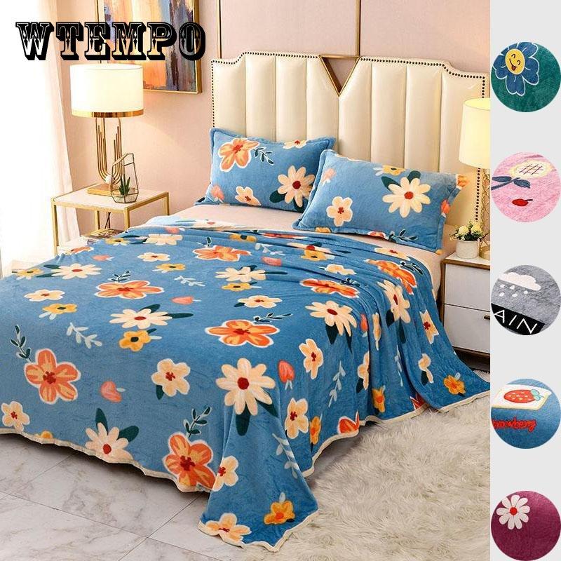 1.5/1.8/2m Bed Flannel Bed Sheet Single Double Coral Pile Blanket Double Sided Plush Bed Sheet Twin Queen King Size
