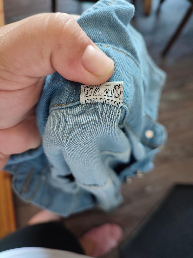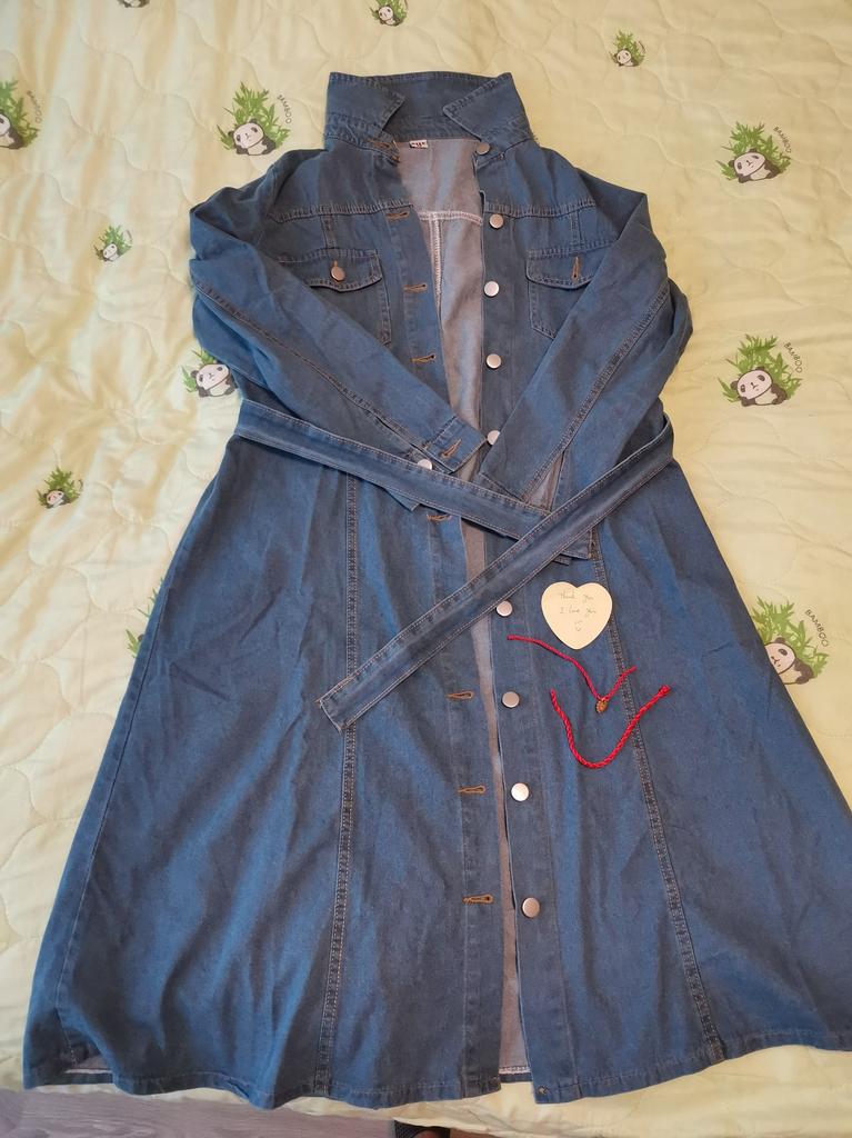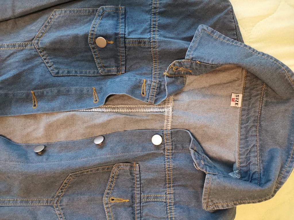 The color doesn't match. Orange thread is used. Doesn't look good on gray-blue. The style is as in the picture. The fabric is thick. There is a smell