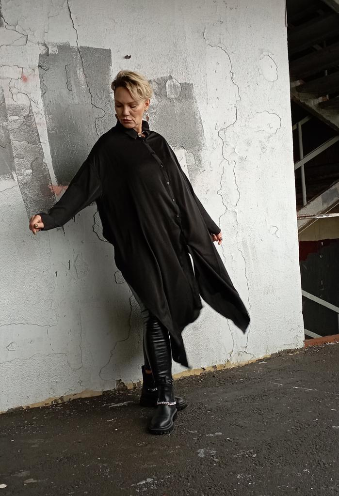DIMANAF Autumn Dress Women Clothing Shirt Dress Oversize Cotton Elegant Lady Casual Loose Long Sleeve Vintage Cardigan Black — buy online with free worldwide shipping!