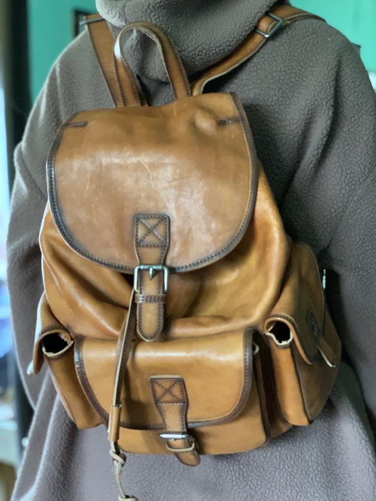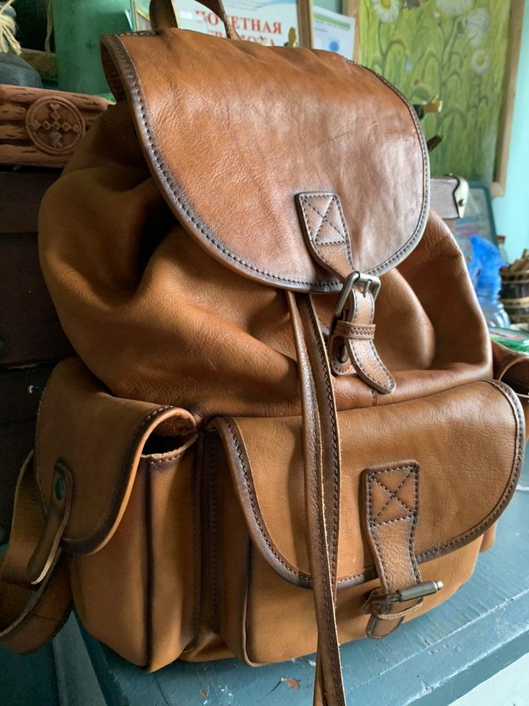 Very nice backpack! Worked very solidly! Leather has a pleasant feel! Color as in the photos! Carrying strap inside textile so no leather abrasion on clothing!