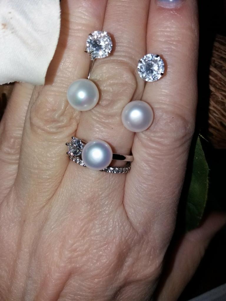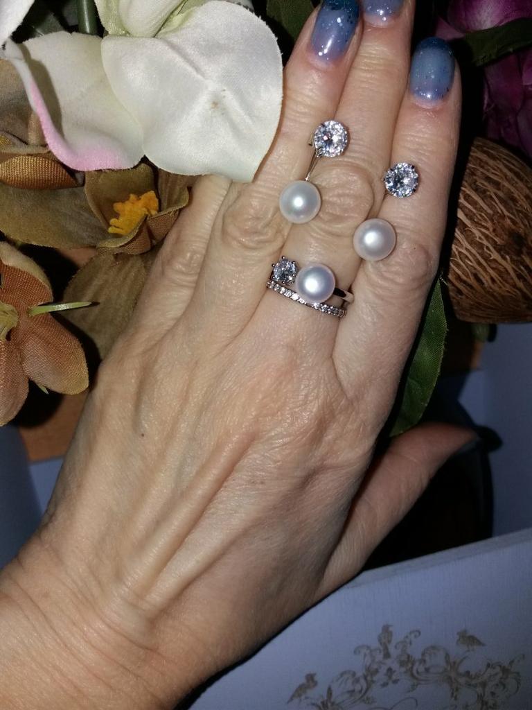 SENIKO Double Color Natural Freshwater Pearl Rings For Women Fashion Female Cubic Zirconia CZ Ring Pearl Jewelry Adjustable Ring — buy online with free worldwide shipping!