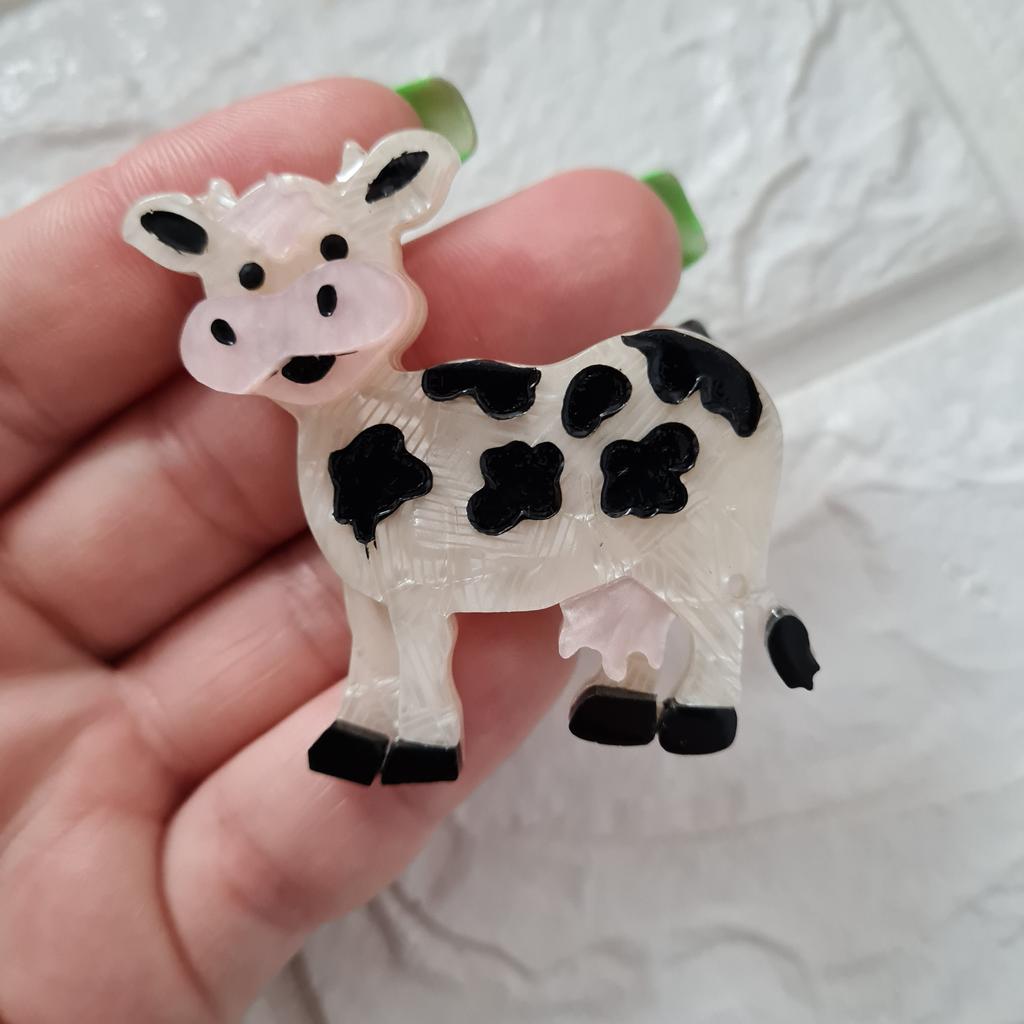 Blucome Acrylic Animal Brooches Cute Milk Cow Shape for Women Men Suit Scarf Hijab Pins — buy online with free worldwide shipping!