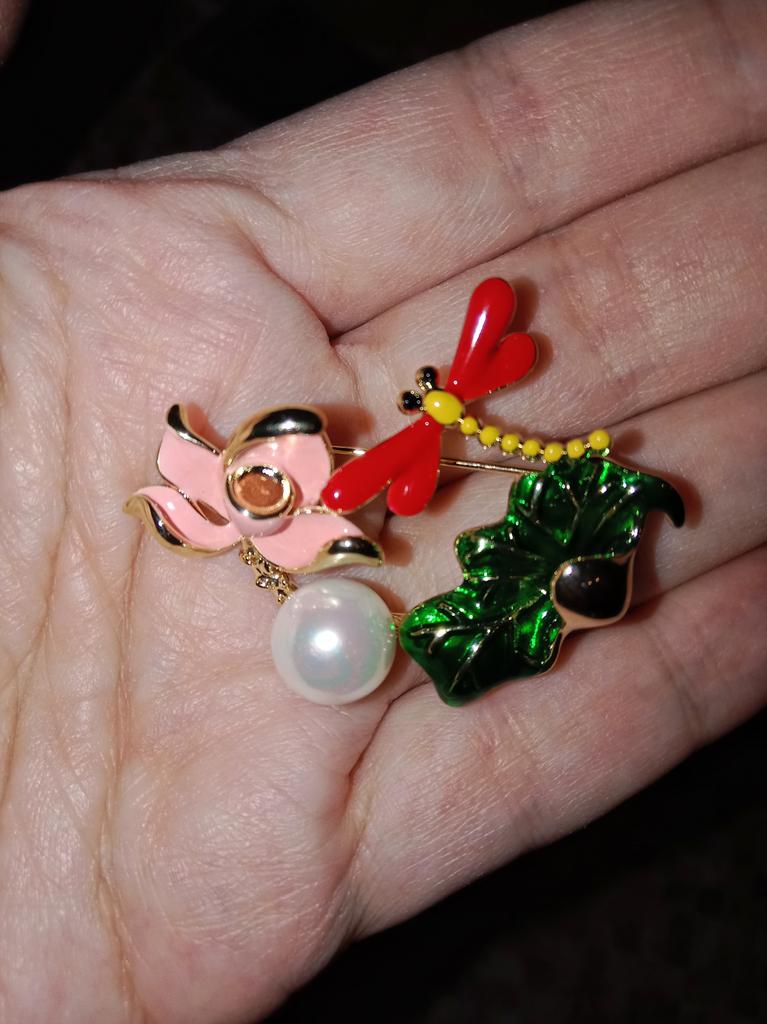 Blucome Red Dragonfly Lotus Shape Brooches Copper Corsage Suit Scarf Hat Pins for Women — buy online with free worldwide shipping!