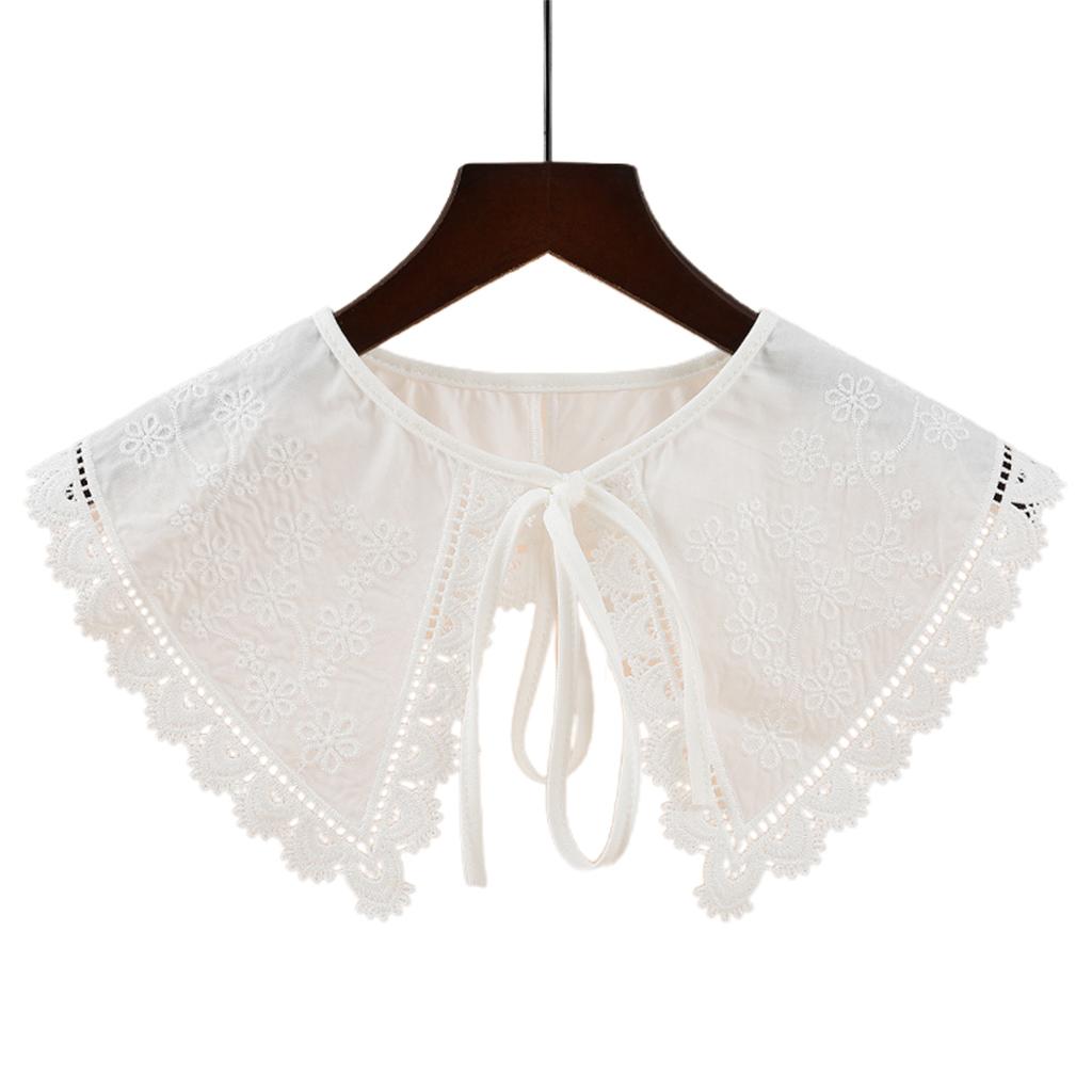 Japanese Stylish Fake Collar Dickey for Women Girls Floral Embroidered Lace White Shawl Scarf Student Necklace Capelet — buy online with free worldwide shipping!