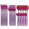 Purple Stainless Steel Cutlery Set 24pc For 6 Flatware Knife Fork Coffee Spoons Tableware Suit Household Kitchen Dinnerware Set
