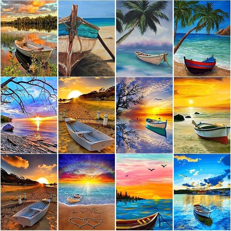 5D DIY Diamond Painting Sunset Boat View Diamond Embroidery Sea View Cross Stitch Flower Full Round Drill Home Decor Gift — buy online with free worldwide shipping!