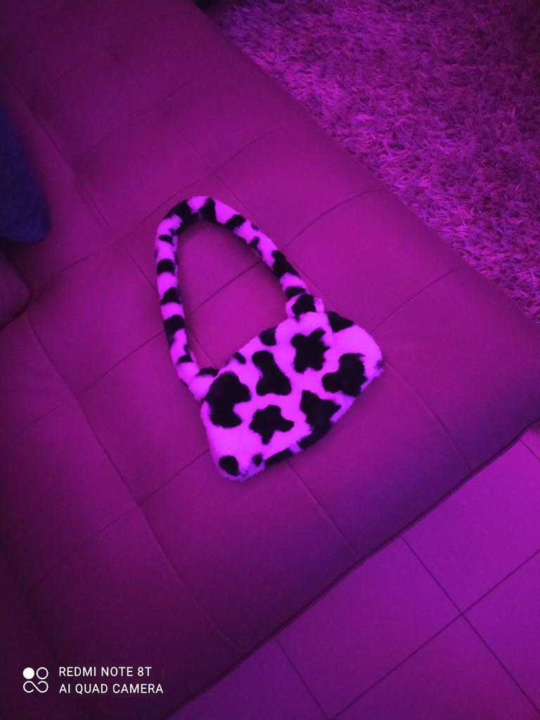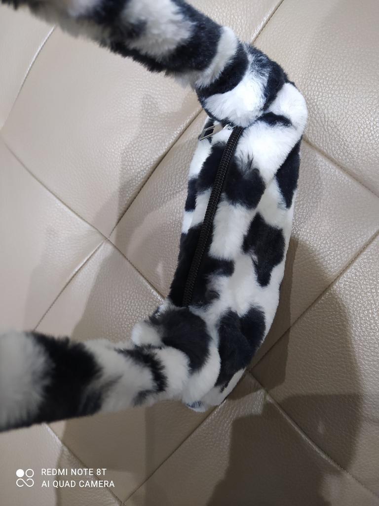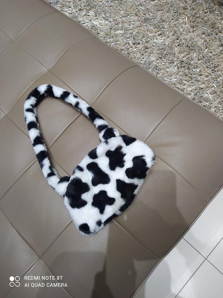 Fashion Women Cow Print Mini Shoulder Bags Female Winter Plush Underarm Leopard Zebra Pattern Fluffy Tote Bags Small Purses — buy online with free worldwide shipping!