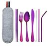 Travel Dinnerware Set Portable Cutlery Camping Dinner Sets Stainless Steel Tableware Rainbow With Straw Kit Brush Chopstick Bag