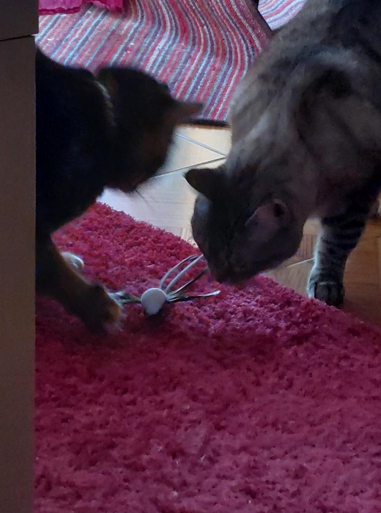 My cats enjoy playing with it. Unfortunately it doesn't stick to the floor