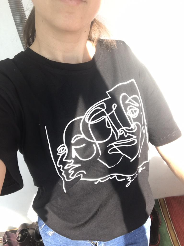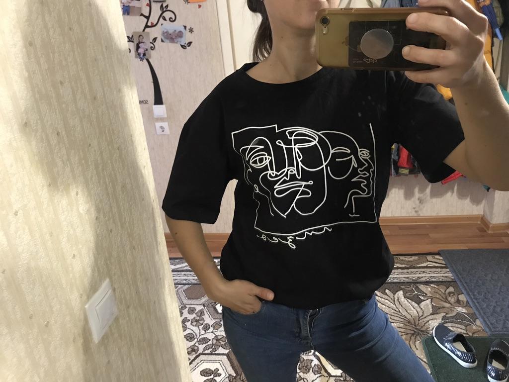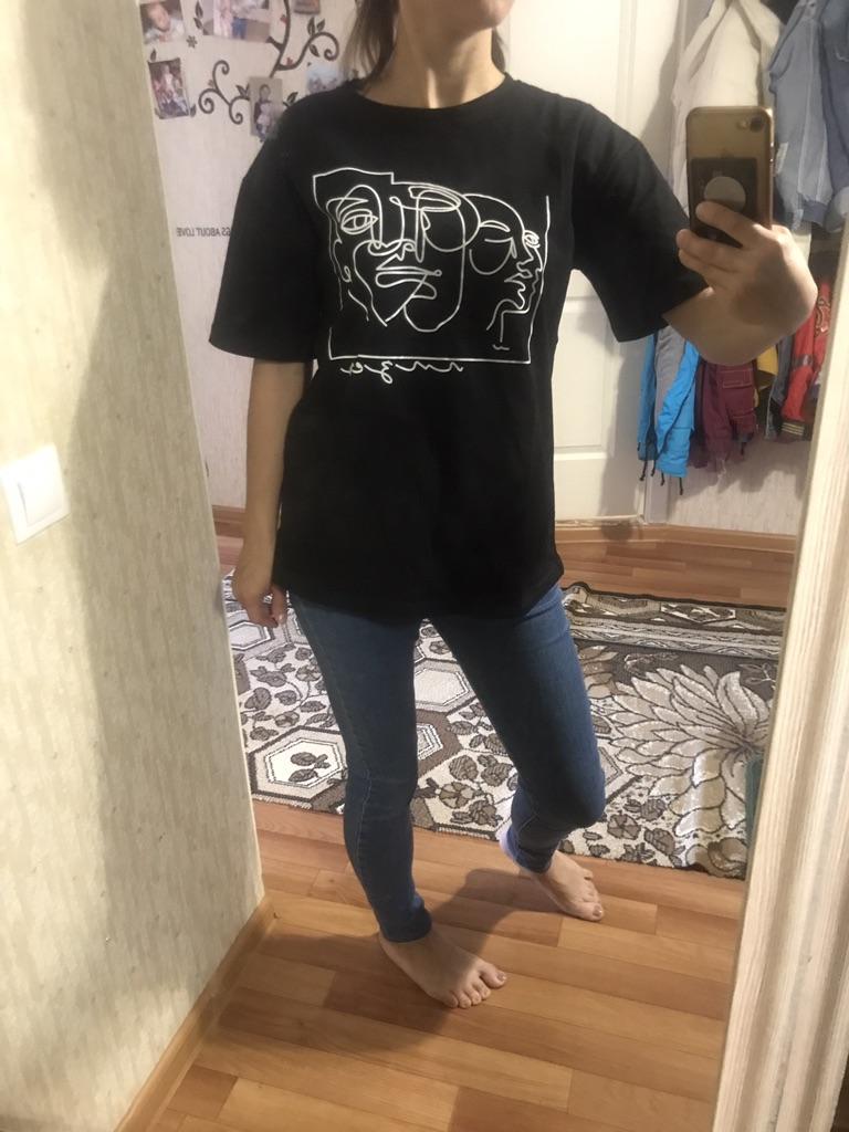 Hirsionsan Fashion Abstract Line Printed T Shirt Women Funny Graphic Soft Loose Female Tees Cotton Summer Casual Tops Khaki Tshirts 2021