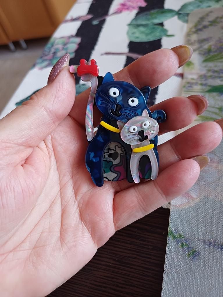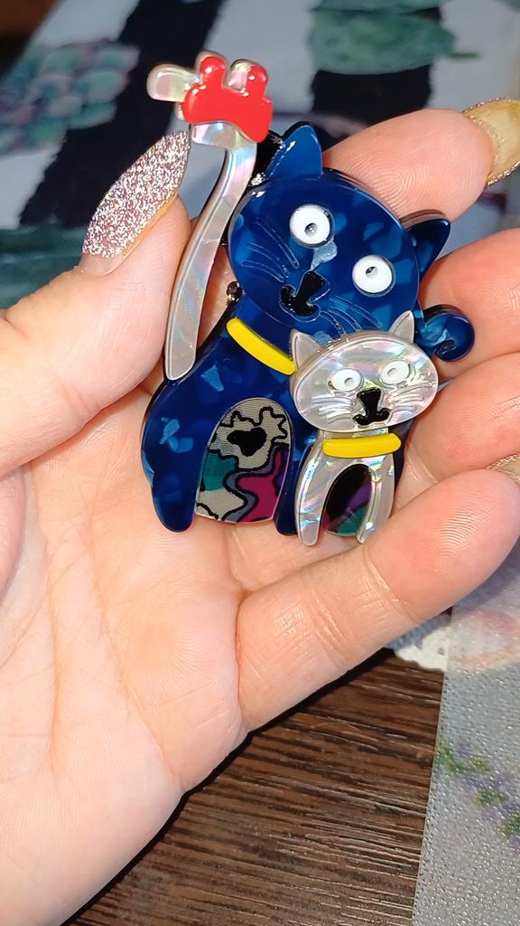 Blucome Acetic Acid Plate Acrylic Brooch Cute Cartoon Two Cats Brooch for Woman Man Suit Bag Hijab Pins Gifts — buy online with free worldwide shipping!