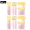 48Pcs Gold Mirror Polishing Cutlery Set Stainless Steel Dinnerware Tableware Knife Fork Spoon Coffee Spoon Flatware Home Party