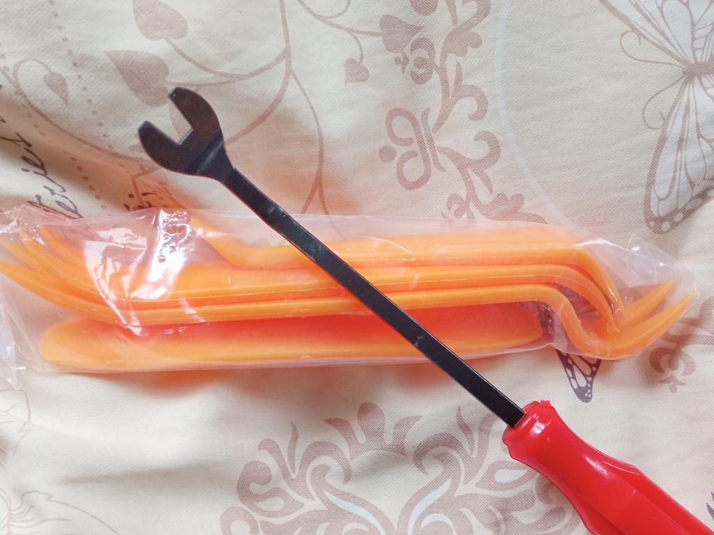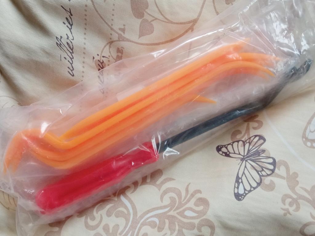 Tool set to disassemble car upholstery ✨ Thanks to this set you can quickly remove car upholstery without damaging it. It's perfect for making repairs (for example if the upholstery adhesive is old and lifting and you need to re-glue your upholstery). But also to use it to remove it completely and replace it with a new one. I ordered it for my father since he is going to change the upholstery of my car soon so I am sure it will be very useful. The shipment was very fast and as you can see the set is very complete (it includes the metal extraction tool as well as a kit of rigid plastic spatulas).
