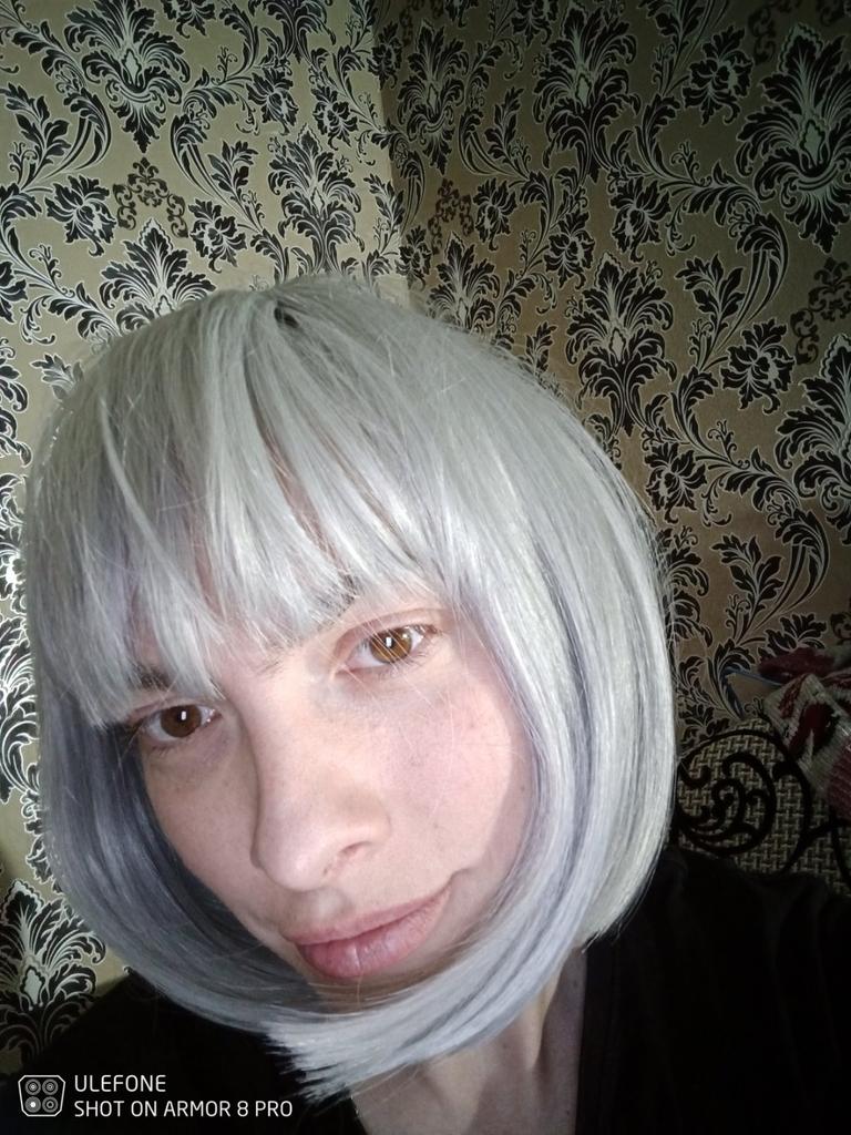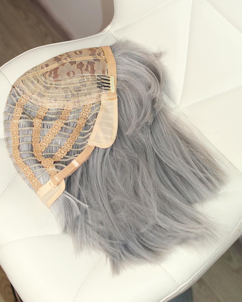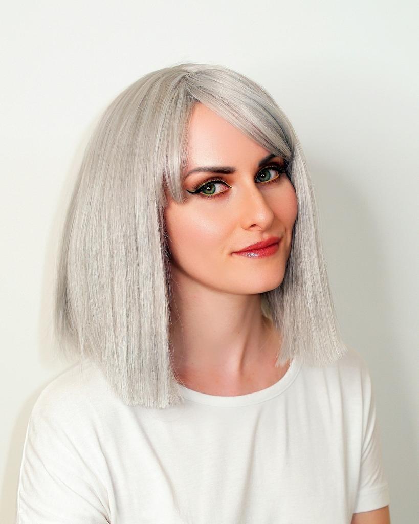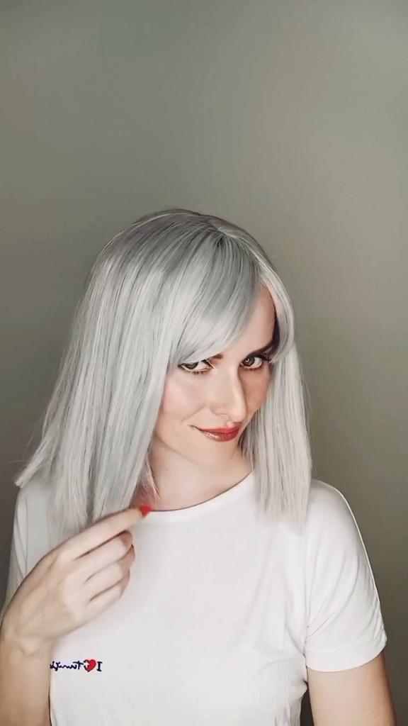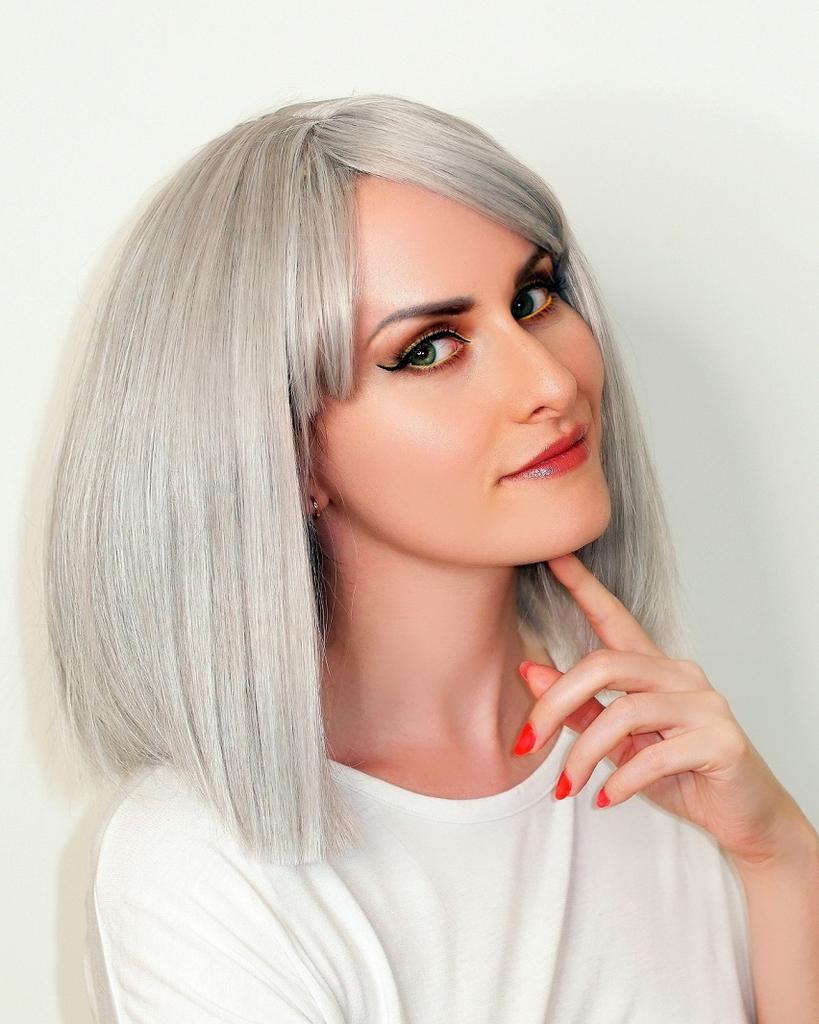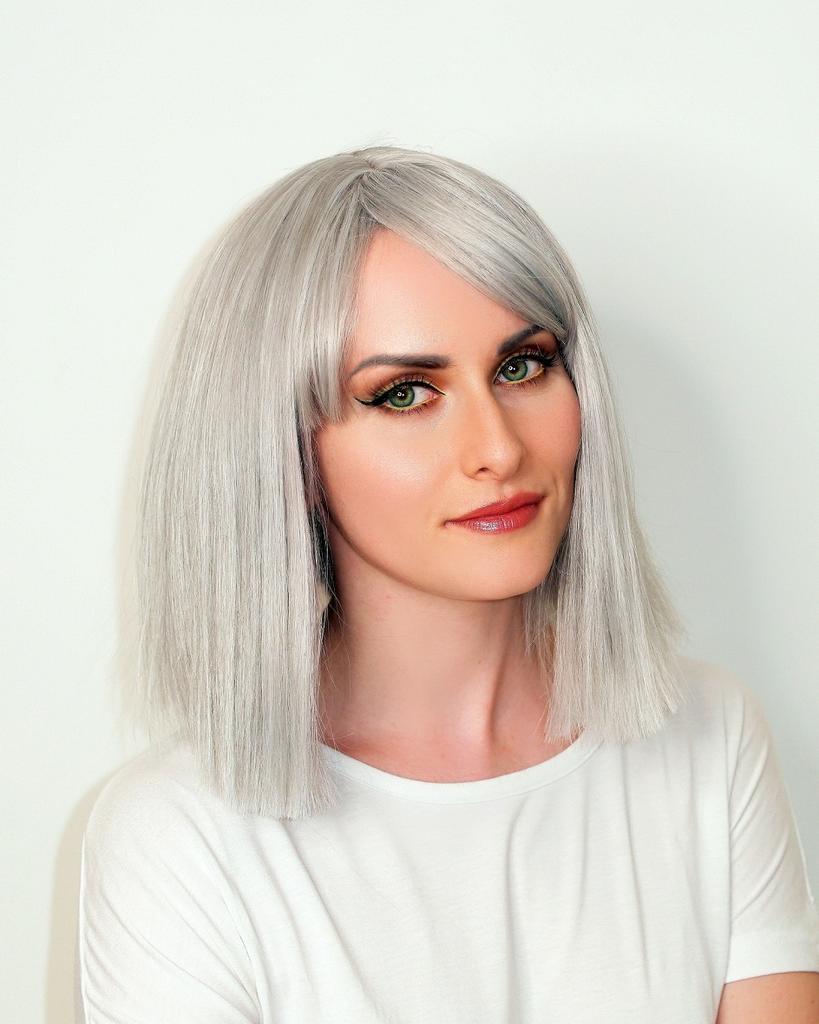 LISI HAIR Women Light Gray Hair with Bangs Synthetic Fiber Wig Cosplay Straight Bob Wig Shoulder Length Straight Bob Halloween Wig — buy online with free worldwide shipping!