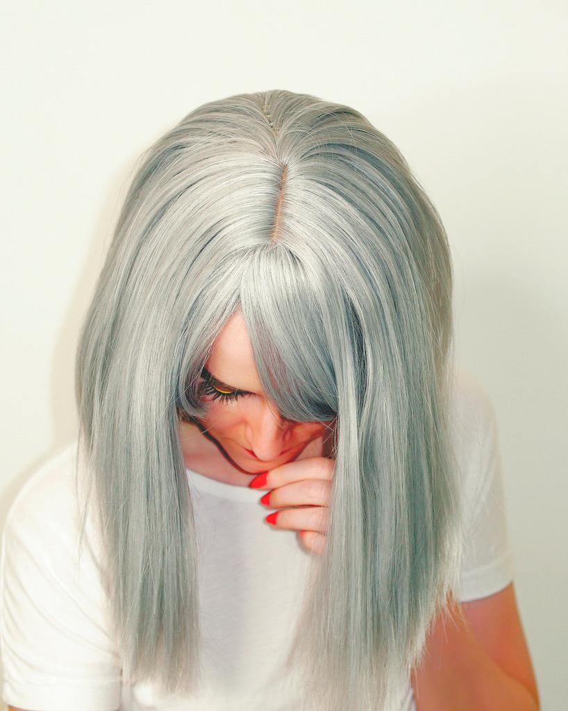 LISI HAIR Women Light Gray Hair with Bangs Synthetic Fiber Wig Cosplay Straight Bob Wig Shoulder Length Straight Bob Halloween Wig