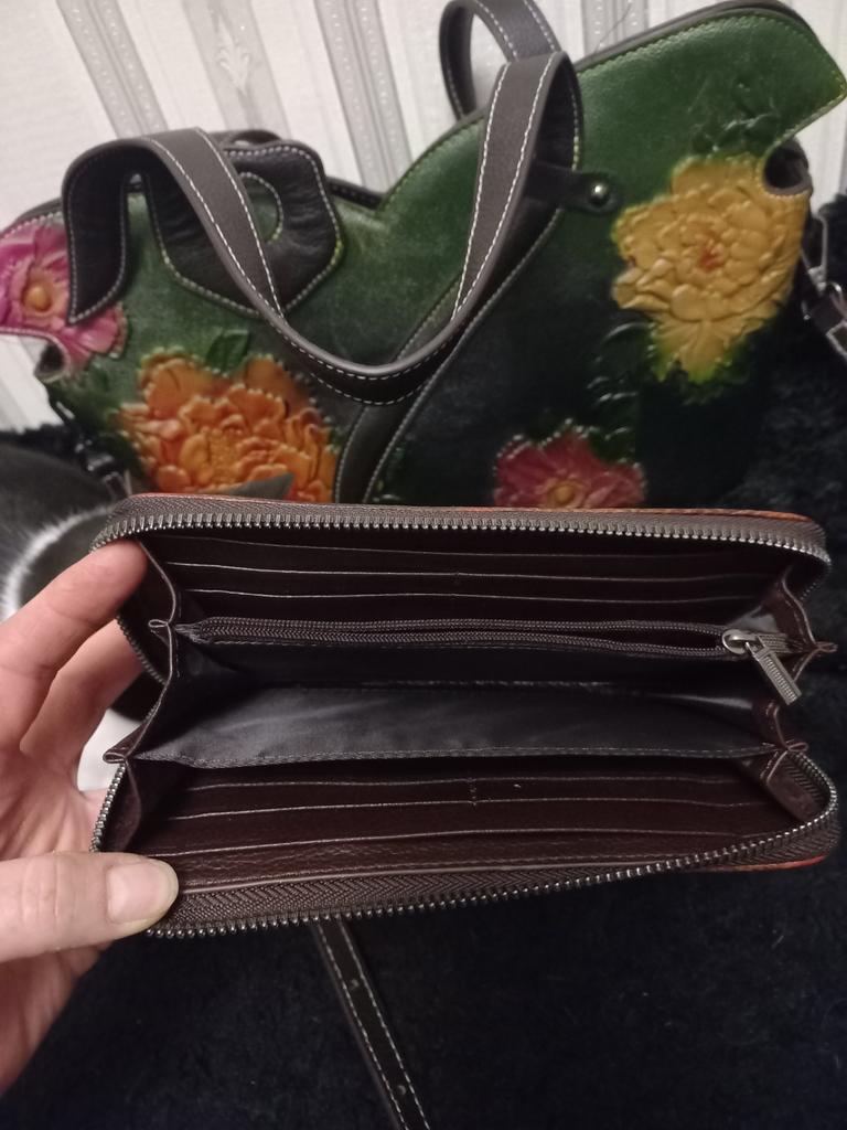 A large beautiful wallet, I took it under my bag, it's perfect. The phone fits easily in the case, there is a strap for the hand. I like it