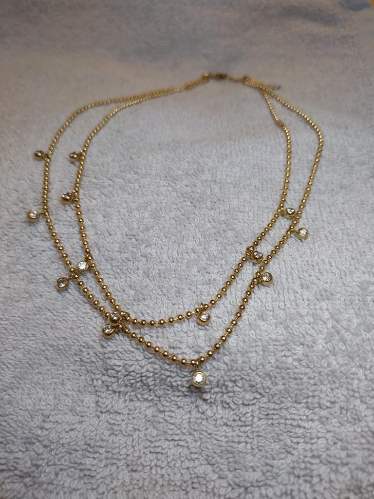 Eetit Cubic Zirconia Bead Chain Necklace for Women Stainless Steel Layered Collar Necklace — buy online with free worldwide shipping!