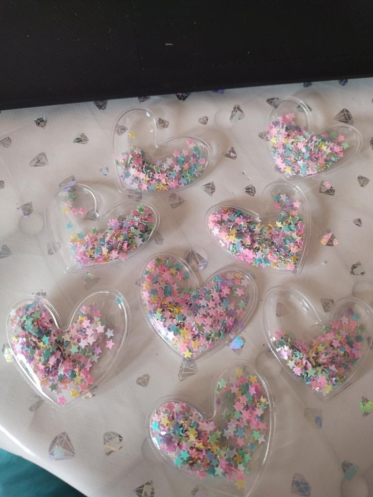 8Pcs/lots Transparent PVC Filling Sequin Heart Flatback Scrapbooking Ornamnet Patches Accessories DIY Crafts Supplies