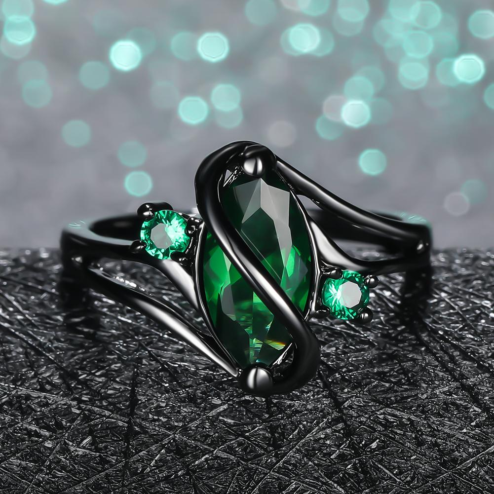 Romantic Marquise Cut Green Stone Black Gold Color Twist Ring Wedding Christmas Jewelry Anniversary Gifts