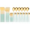 30Pcs Red Gold Dinnerware Set Western Stainless Steel Cutlery Knife Cake Forks Tea Spoon Flatware Silverware Kitchen Tableware