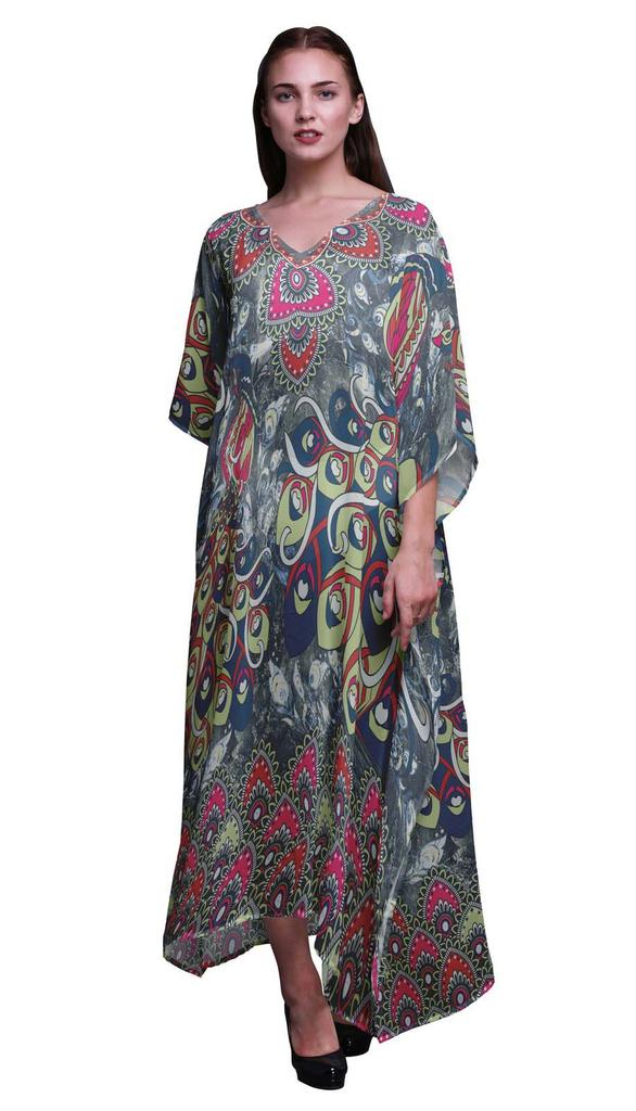 Phagun Peacock Bird Long Caftan Maxi Dress Beach Swimwear Cover up Womens — buy online with free worldwide shipping!