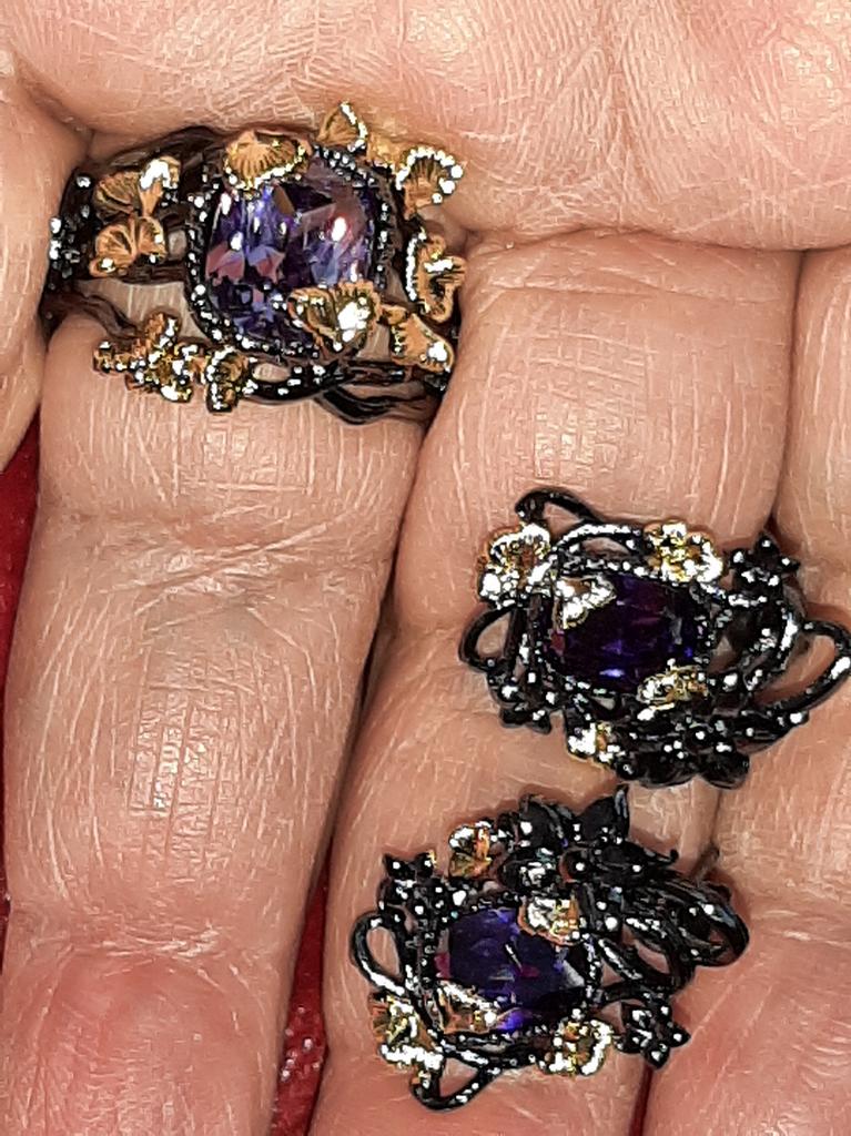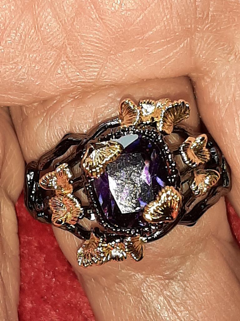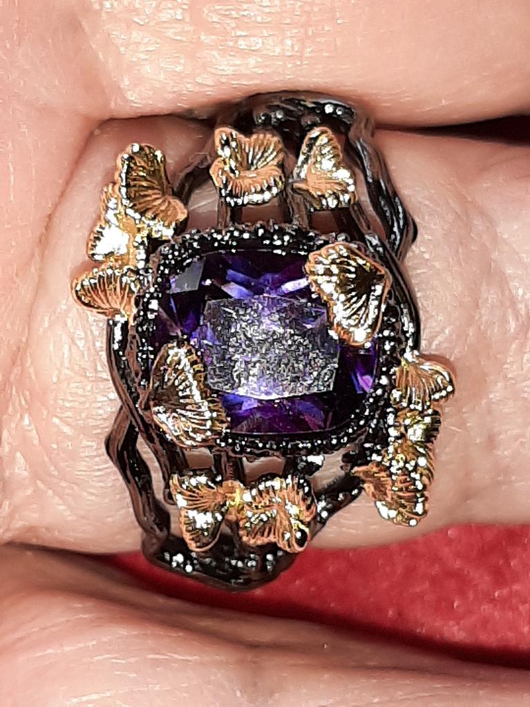 Exquisite Ring for Women Black Gold Jewelry Purple Shiny Bright Zircon Ring Butterfly Flower Ring Party Jewelry Wedding Bridal Jewelry — buy online with free worldwide shipping!
