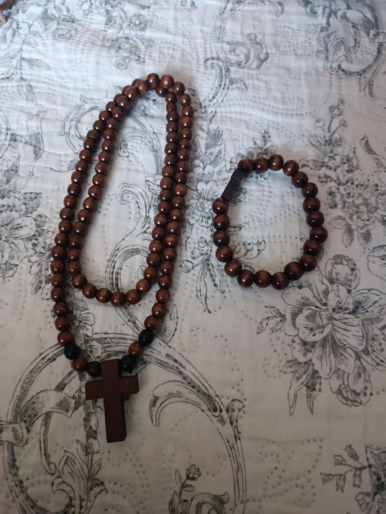 Vintage Cross Pendant Wood Beads Sweater Chains Necklace Bracelet for Unisex Women Men Wedding Jesus Jewerly Party Gifts — buy online with free worldwide shipping!