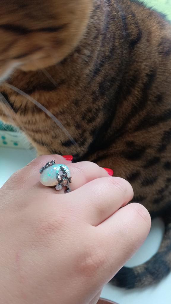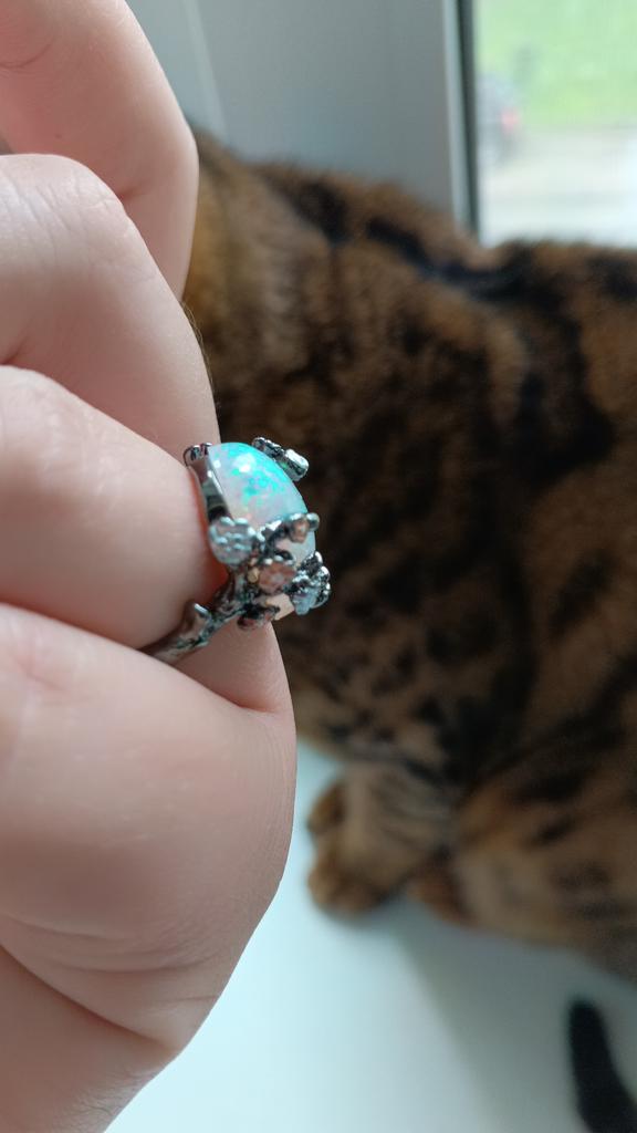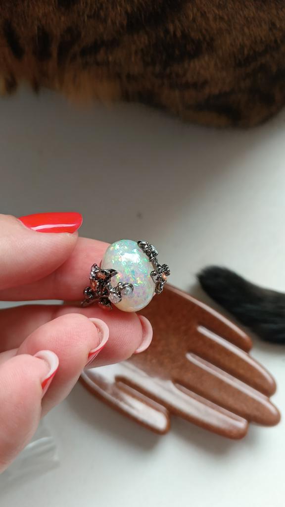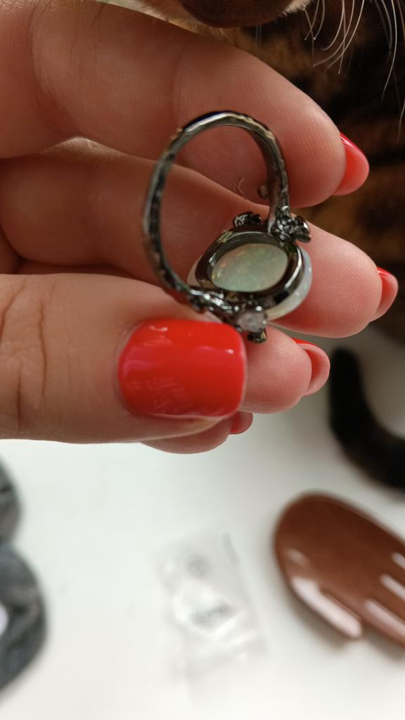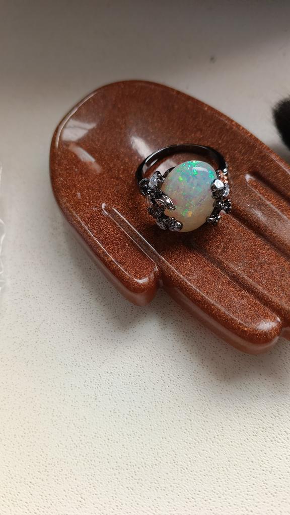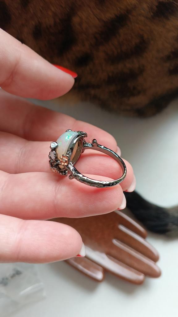 Vintage Women Faux Opal Plum Blossom Flower Two Tone Finger Ring Jewelry Gift